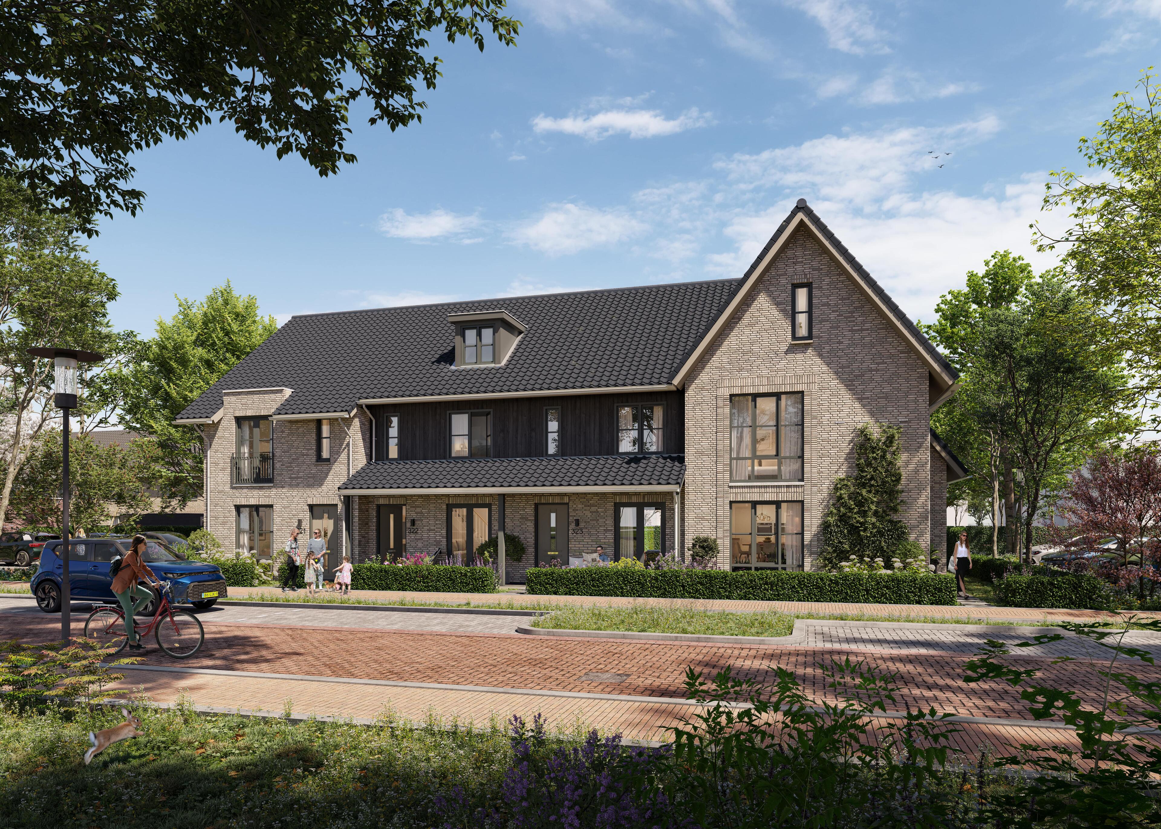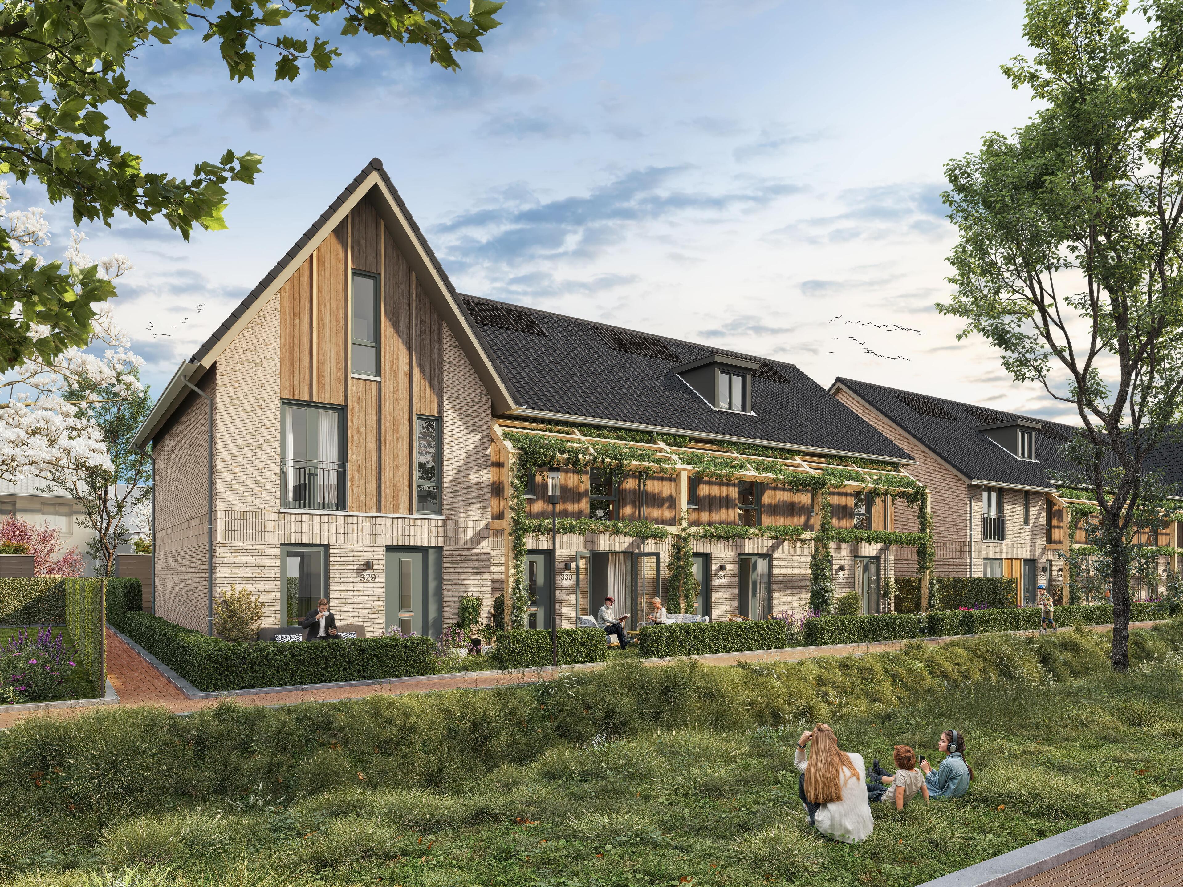 Geniet ’s ochtends aan de voorzijde onder je veranda van een kop koffie in de ochtendzon, terwijl de kinderen veilig spelen. Of stap vanuit je huis naar buiten en geniet van het uitzicht over het Buurtpark, waar groen en rust samenkomen.