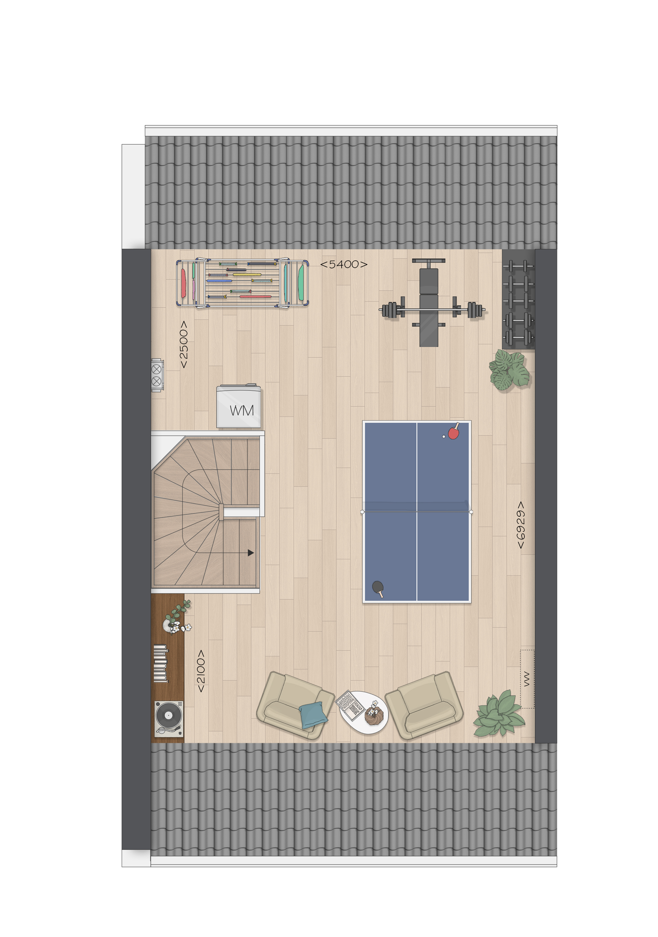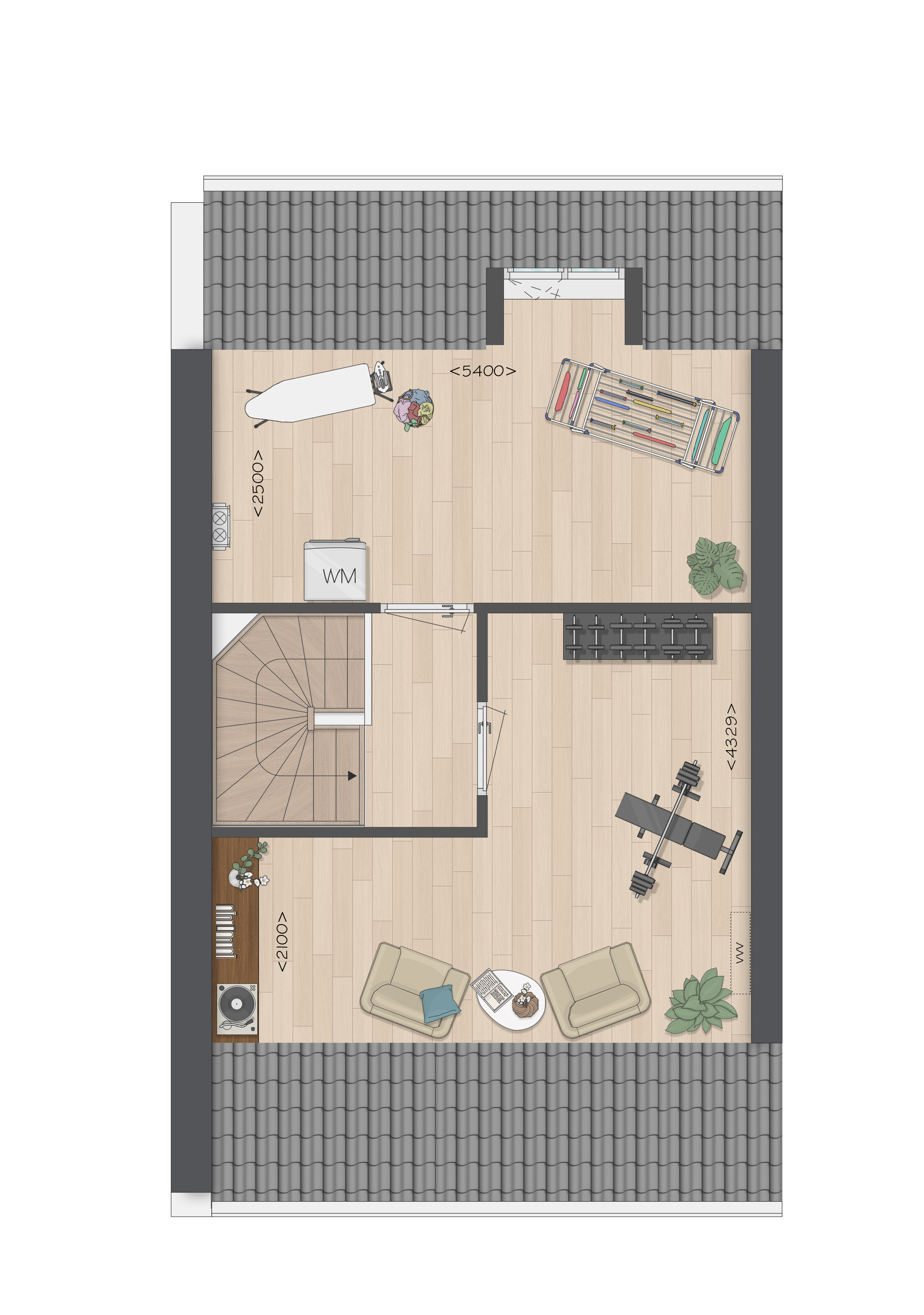De tweede verdieping biedt je een zee aan ruimte. Hier vind je de aansluitingen voor de wasapparatuur en heb je de mogelijkheid om een aparte wasruimte te maken en een thuiskantoor of extra slaapkamer met dakkapel aan de achterzijde.