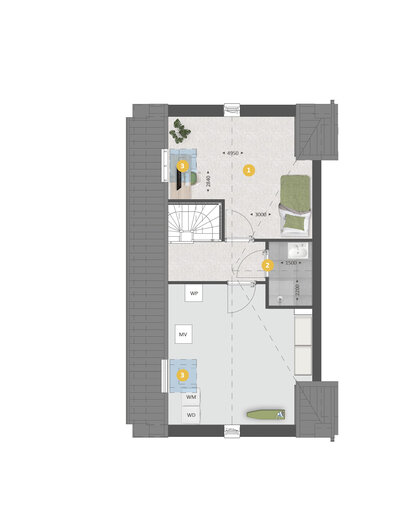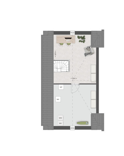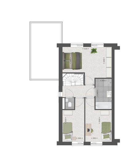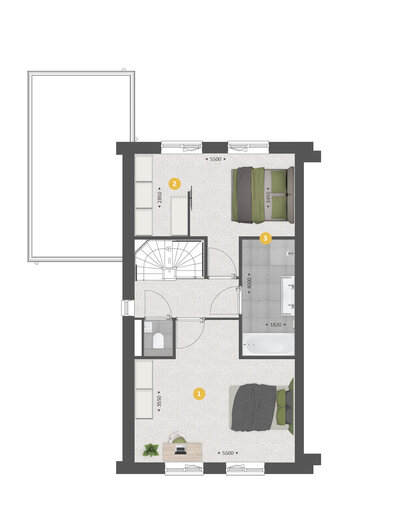 De tweede verdieping is ruim van opzet. Met een combinatie van diverse indelingsopties maak je hier een prachtige woonverdieping met bijvoorbeeld twee slaapkamers, een tweede badkamer en een was-/bergruimte.