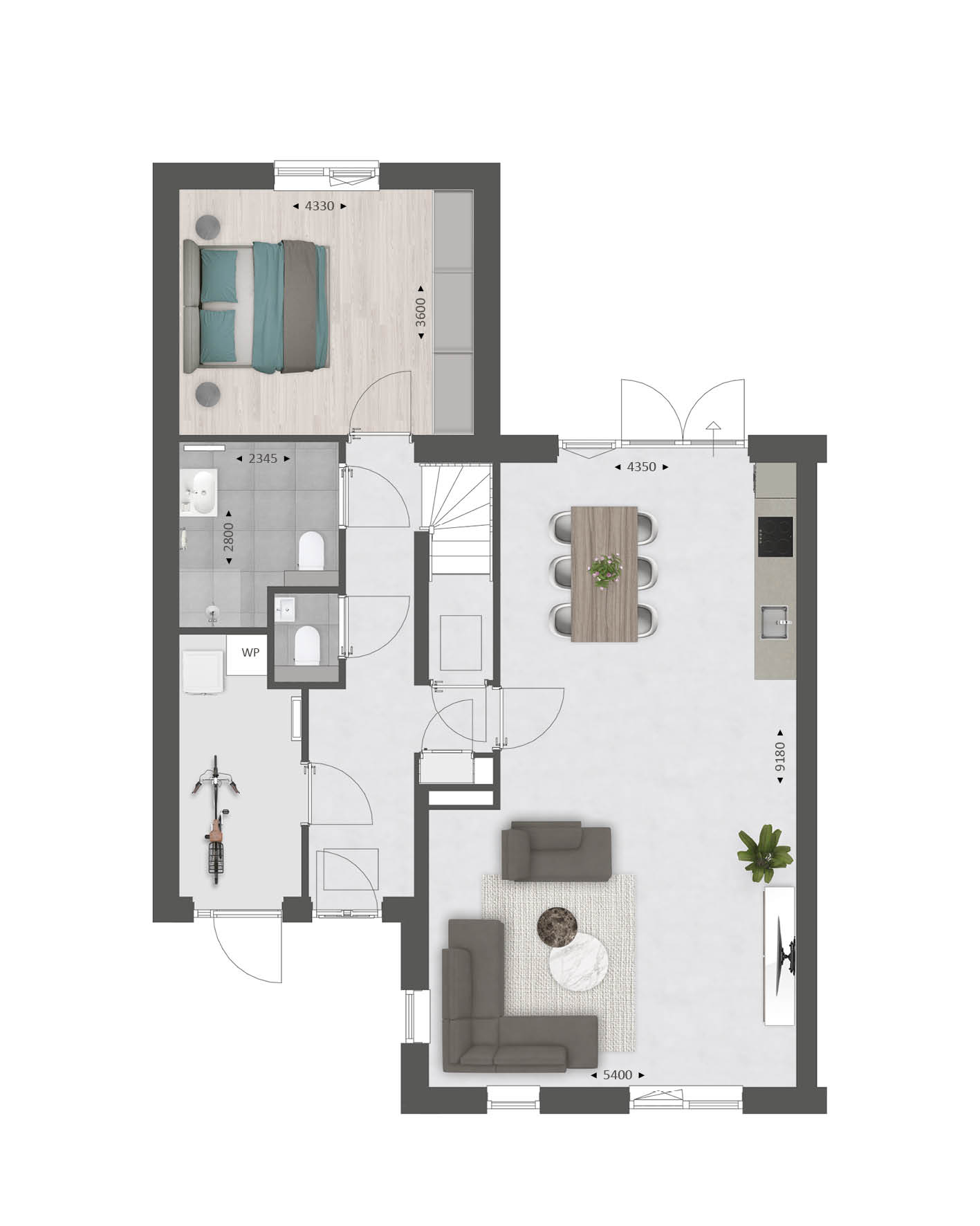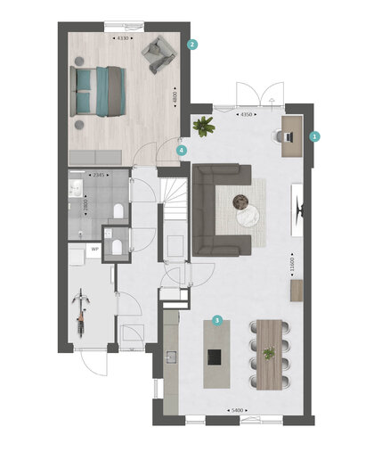 Met de diverse opties die we aanbieden kun je bijvoorbeeld de keuken naar de voorzijde verplaatsen en de woon- en slaapkamer vergroten. Je creëert hiermee veel extra leefruimte op de begane grond.