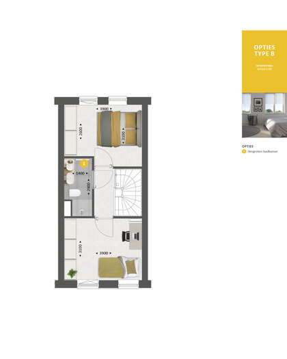 De tweede verdieping is standaard met een vaste trap bereikbaar. Hier is een ruime zolder aanwezig. Met diverse opties kun je hier een volwaardige woonverdieping van maken. Met de keuze van een vaste trap, eventueel dakkapellen aan de voor- en achterzijde én de indelingsoptie, creëer je hier twee kamers én een wasruimte.