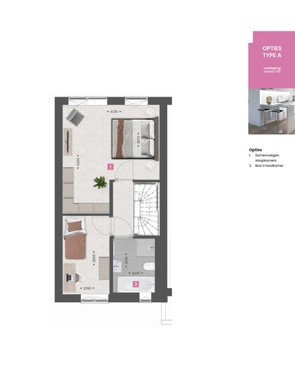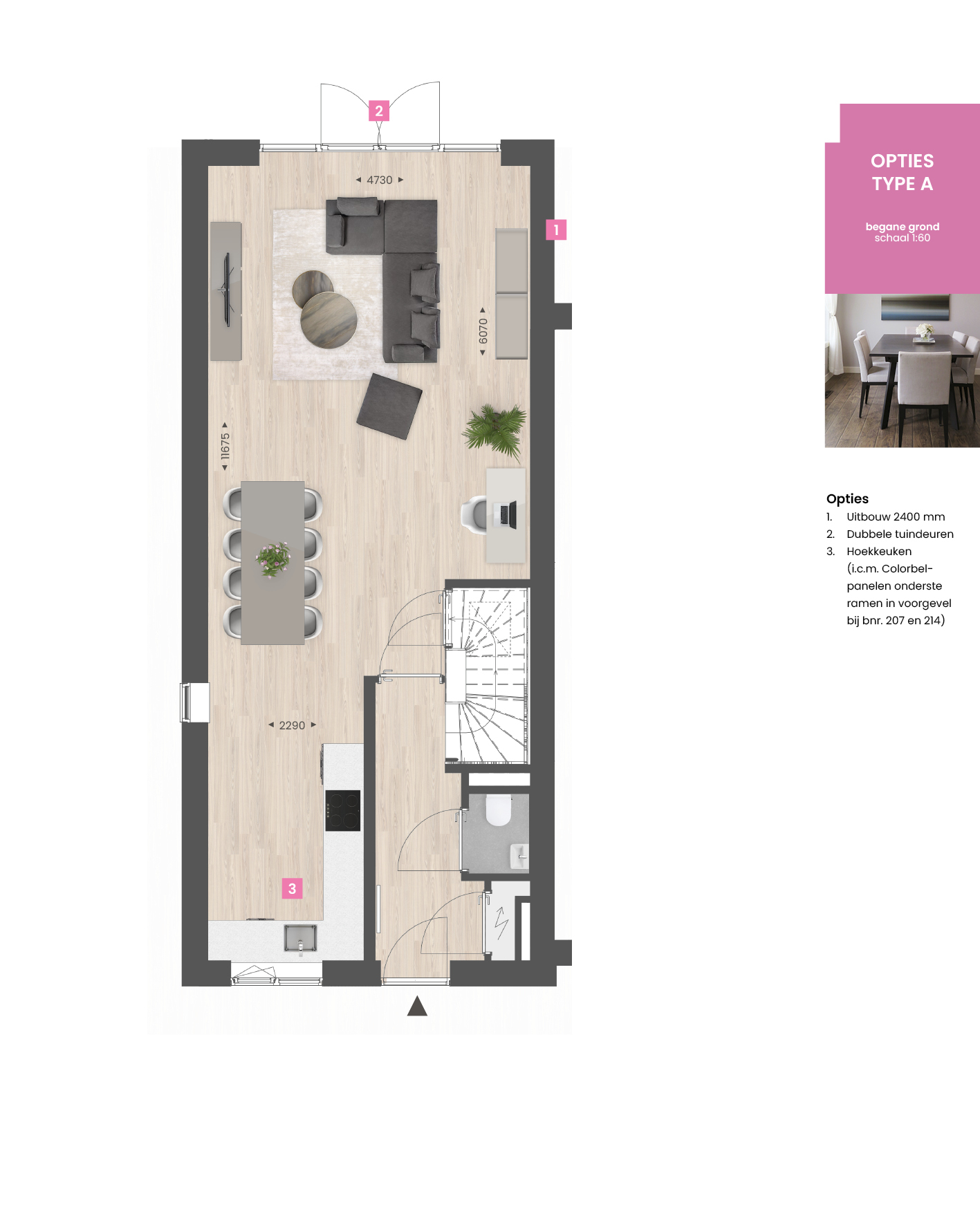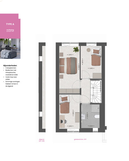 Deze woning heeft alles in huis om fijn te wonen. Een doordachte indeling, veel leefruimte, 3 slaapkamers op de eerste verdieping én een ruime tweede verdieping. Heb je of wens je meer eer ruimte? Met een uitbouw van 2400 mm aan de achterzijde vergroot je de woonkamer en maak je van dit huis jouw thuis. Bekijk de optieplattegronden hieronder voor alle mogelijkheden bij deze woning.