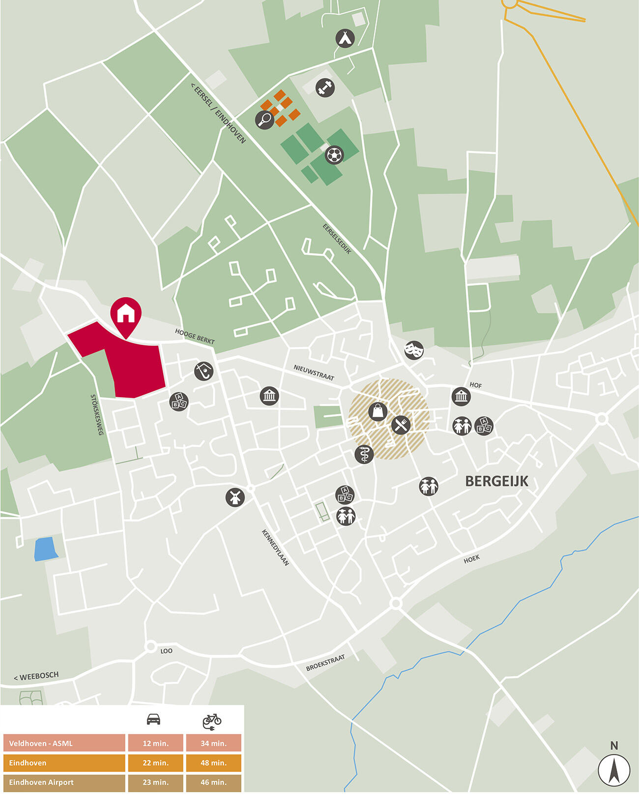 Bergeijk biedt een unieke mix van landelijke charme en nabijheid tot de bruisende Brainport-regio. Via de Diepveldenweg ben jij snel verbonden met de A67 en belangrijke werkgevers in de Brainportregio, zoals de ASML-campus in Veldhoven en de HTC (High Tech Campus) in Eindhoven. Ook het openbaar vervoer in Bergeijk is goed geregeld.