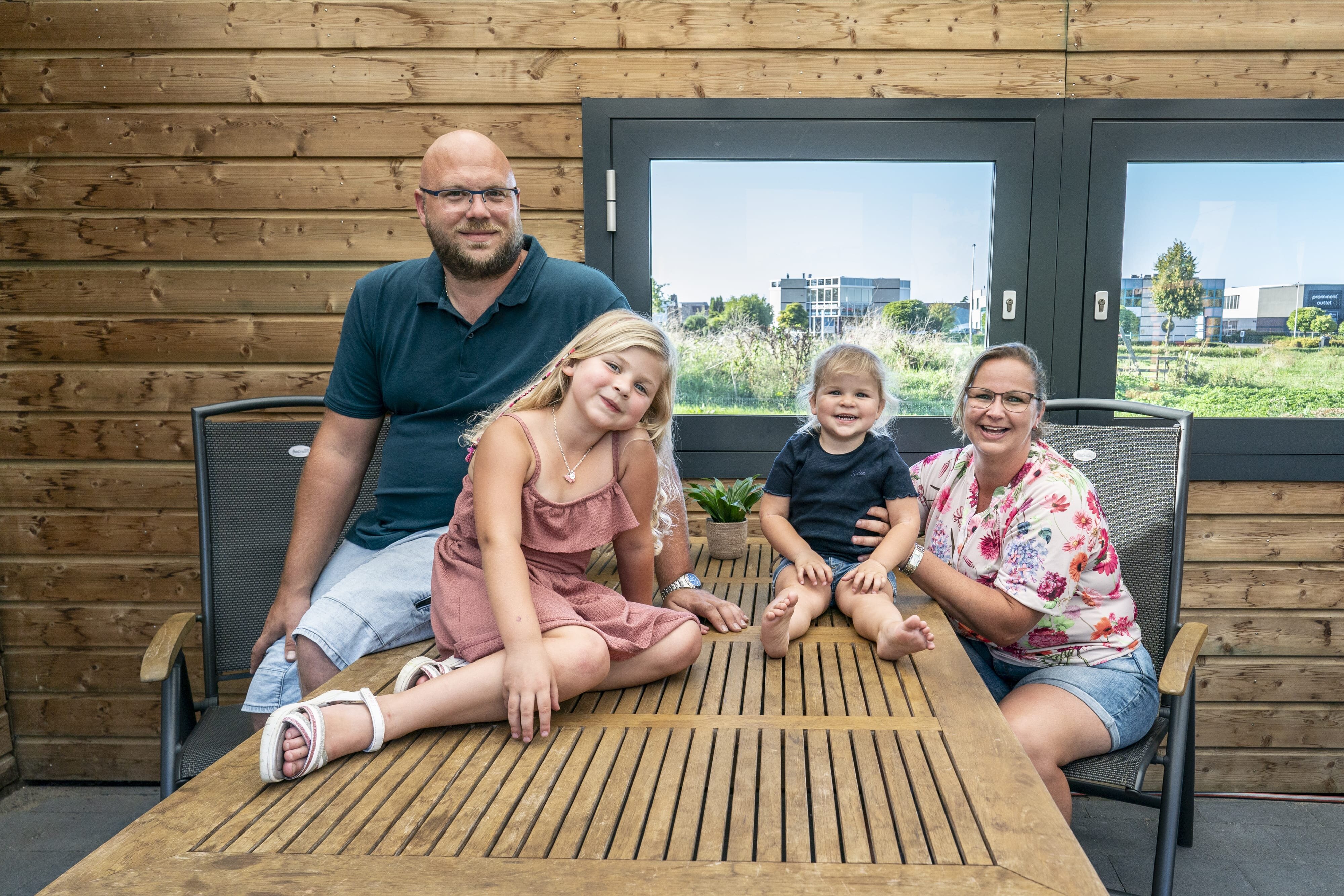“We zijn hier in 2014 komen wonen, toen het plan nog in de kinderschoenen stond, vertelt Maikel. “De wijk is inmiddels gegroeid naar een volwassen wijk met een dorps karakter. Wij komen zelf uit het boerenleven en houden van weids wonen met vrij uitzicht. Ons hoekhuis in een rijtje van vier woningen ligt aan de rand met zicht op een paardenwei. Om extra van het uitzicht te genieten hebben we een kozijn gemaakt in onze ‘buitenkamer’, zodat we lekker weg kunnen kijken.”