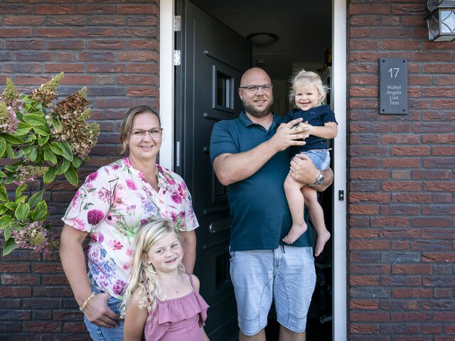 “We komen uit Wijchen en Maurik en zochten een woning in het midden. Zo kwamen we in Beneden-Leeuwen uit”, zegt Angela. “In 2014 kregen we hier nog veel woning en ruimte voor ons geld. We wonen nu lekker centraal tussen familie, vrienden en ons werk. Het is een prima afstand om te berijden. Inmiddels hebben we twee jonge kinderen en hebben we ook vrienden hier in Het Leeuwse Veld. De ons-kent-ons sfeer en de dorpse setting trok ons direct aan. We voelen ons hier thuis sinds de eerste dag.”