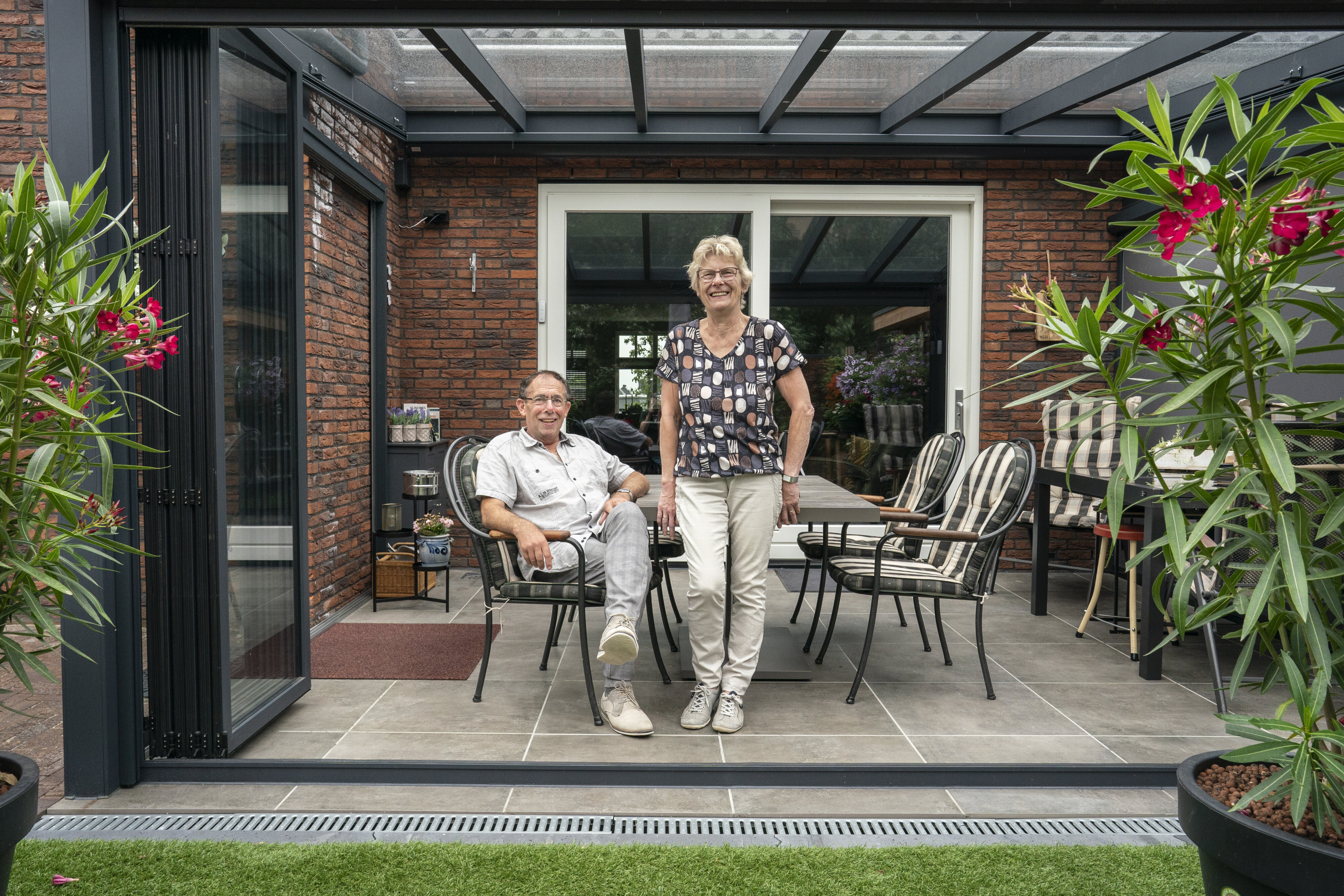Corry geniet verder vooral van de tuin. “Al die bloemen, het is heel kleurrijk met de rozen, lavendel en Toscaanse Jasmijn. Het is één grote bloemenzee, maar dat betekent ook dat we het goed moeten bijhouden. Daar hebben we gelukkig alle tijd voor.”