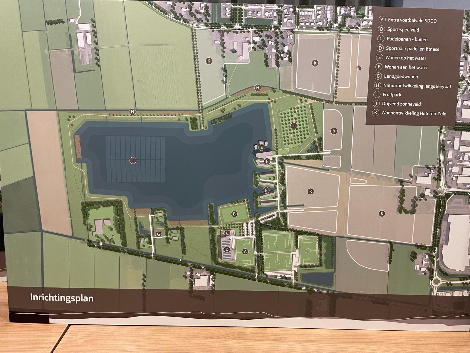 Bovendien werd namens de drie betrokken ontwikkelaars (Roosdom-Tijhuis, Van Arnhem Bouwgroep en Whoon) door Atelier Dutch op deze avond onze gebiedsvisie op Heteren-Zuid gepresenteerd. In deze visie kwamen de ideeën voor de herinrichting van het gebied op hoofdlijnen samen, inclusief de relatie met de omgeving en andere uitgangspunten. Er is aangegeven wat de speerpunten zullen worden bij de ontwikkeling en de fasering in de tijd die goed mogelijk is.