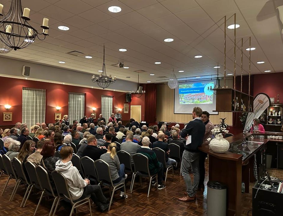 Op het formele deel van de avond volgde vervolgens een ‘woonmarkt’ waar de betrokkenen via banners hun plannen persoonlijk konden toelichten en tevens geïnteresseerden te woord stonden. Al met al was het een zeer waardevolle start van het project, met als doel een integraal plan te maken dat door de inwoners van Heteren wordt gedragen!