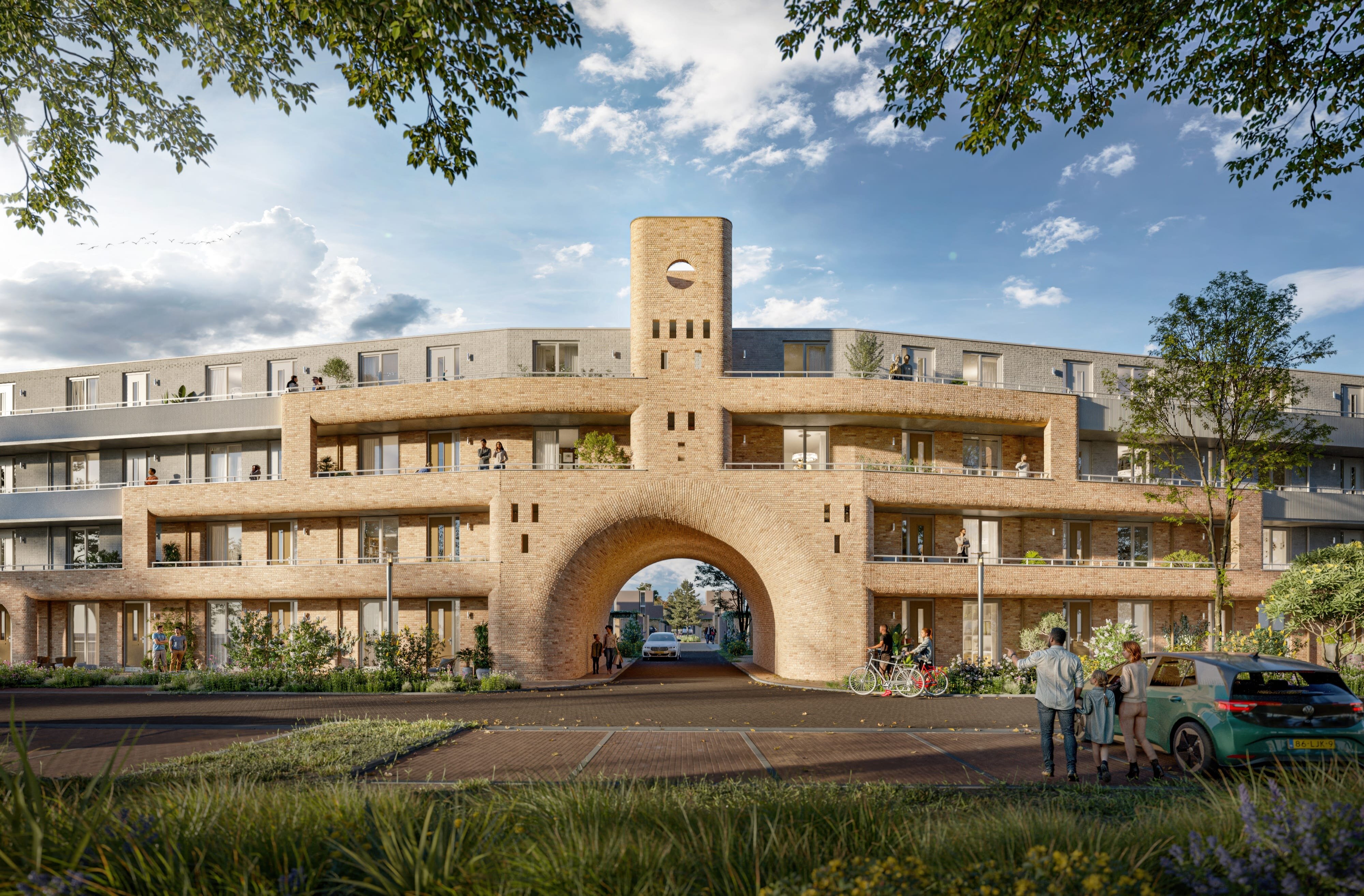 vormgegeven in een U-vorm om een autoluw en groen binnengebied te creëren. Het plan omvat zowel