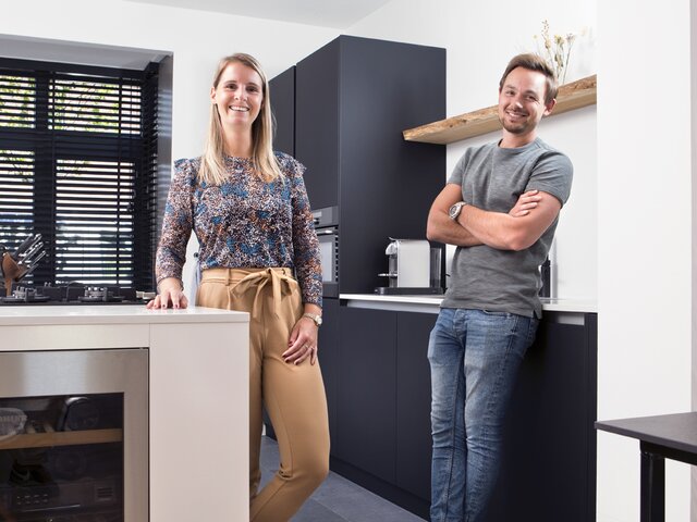 Jeroen en Kristy wisten een eigen stempel op hun nieuwbouwwoning in ’s-Hertogenbosch te drukken. “We wilden in ieder geval in Den Bosch wonen, maar ik had zelf voorkeur voor een wat oudere woning. Iedere keer was er dan wel iets wat ons niet zinde. En daarom hebben we toch ingeschreven op dit nieuwbouwproject. Het is niet echt een doorsnee nieuwbouwwijk en het ligt in een wat oudere wijk, lekker dicht bij het centrum. We zijn achteraf erg blij met onze keuze.”