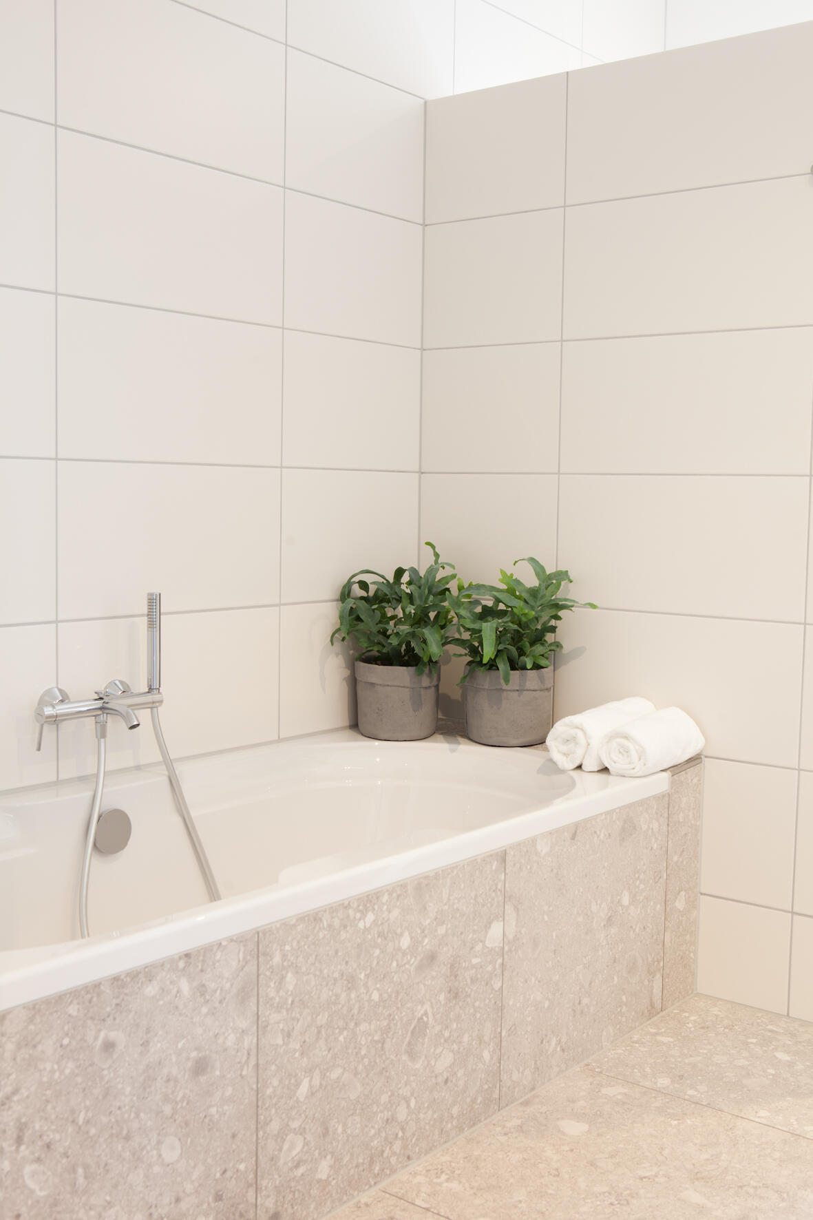 Ook boven hebben Linda en Bert alle mogelijkheden benut om meer ruimte te creëren. De badkamer is groter gemaakt en biedt plaats aan een dubbele wastafel, een ligbad én een zeer ruime inloopdouche.