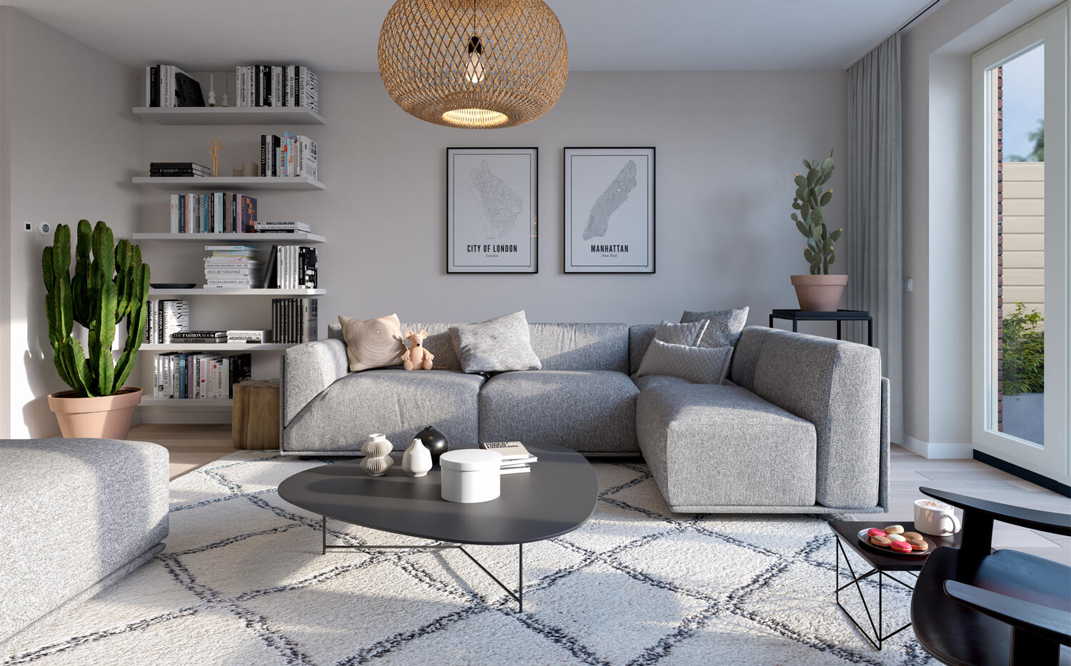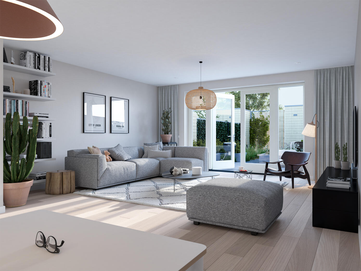 De indeling is bijzonder praktisch met beneden een hal met toilet en technische ruimte, een lichte tuingerichte woonkamer en een open keuken met zicht op de straat. TIP: Maak de woonkamer nóg groter met de optie om deze met 1.20m of 2.40m uit te breiden. De optie voor openslaande tuindeuren zorgen voor veel contact met de achtertuin.