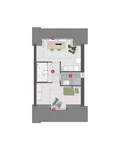 De tweede verdieping is ruim van opzet. Met de combinatie van diverse indelingsopties maak je hier een prachtige woonverdieping met bijvoorbeeld twee ruime kamers met dakkapel aan de voor- en/of achterzijde.Ā