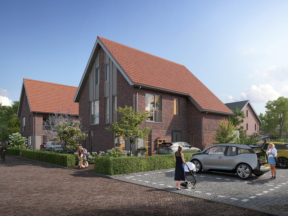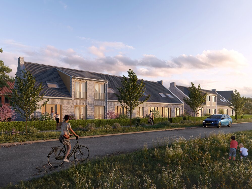 “We willen vooral het landschappelijke karakter van het gebied behouden. De woningen geven we dezelfde ingetogen architectuur als de bestaande boerderijen in de omgeving. Daarnaast zorgen we voor een goed gevoel op wijkniveau en dat straks elke woning zijn eigen kwaliteit heeft. De zeven levensloopbestendige rijwoningen geven we bijvoorbeeld de uitstraling van een statige langgevelboerderij. Het gebouw krijgt een dakkapel die door zijn vorm doet denken aan de entree van zo’n grote boerenschuur waar je met de tractor door naar binnen kan rijden. De woningen aan het lint van Aerlesche Erven hebben een eigentijds dorps karakter dankzij een combinatie van architectuurstijlen.