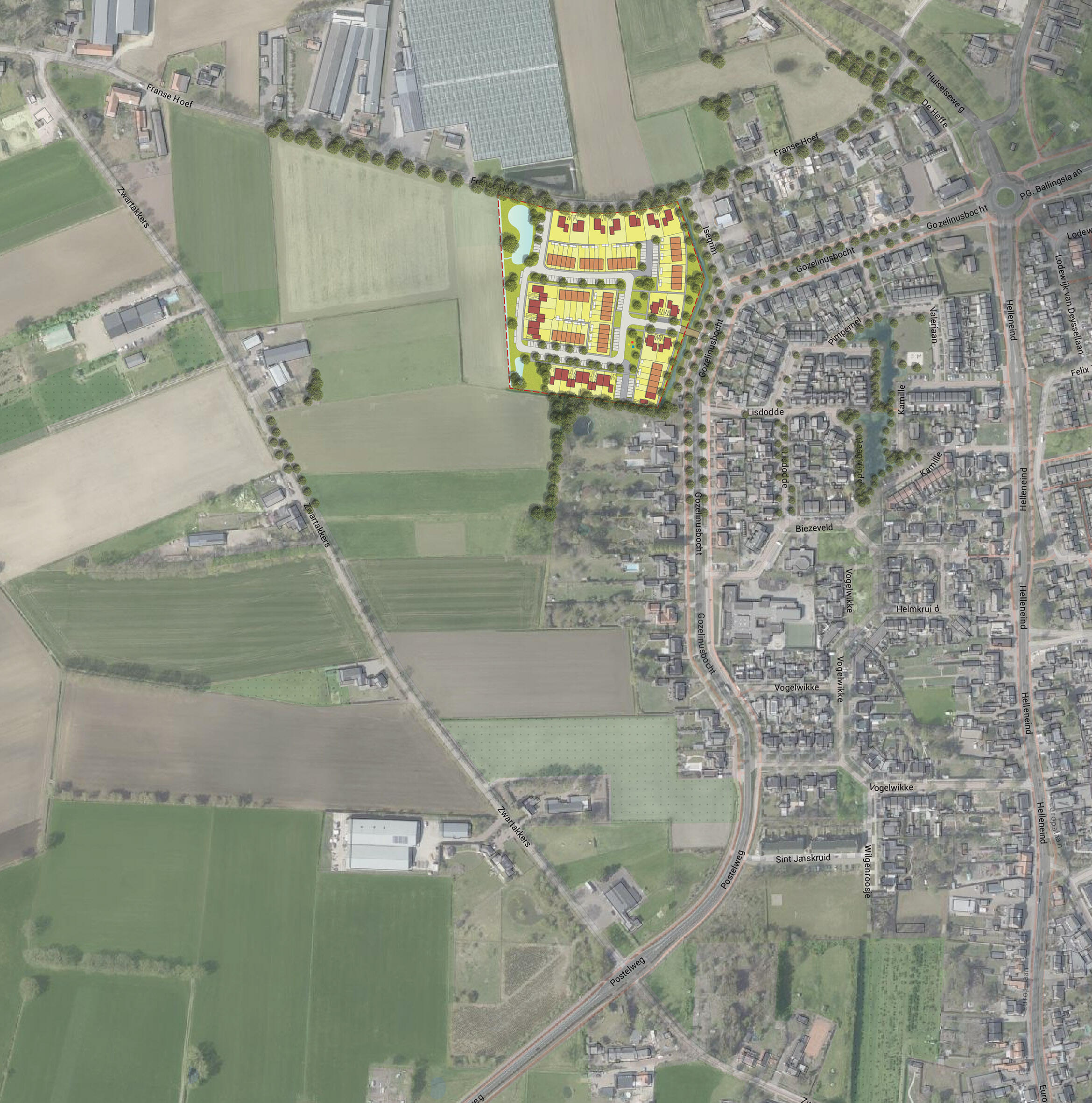 Een nieuwe woonbuurt in ontwikkeling, gelegen aan de noordwestkant van Bladel, vormt een geleidelijke overgang van de bebouwde kom naar de aangrenzende landelijke omgeving. De nieuwe buurt ligt tussen de bestaande wegen Franse Hoef, Isegrim en Gozelinusbocht. Het plangebied omvat een oppervlakte van circa 2,5 hectare, waarin ca. 75 nieuwbouwwoningen zijn voorzien. De woningen zullen bestemd zijn voor meerdere doelgroepen en financieringscategorieën en zullen variëren van rijwoningen tot tweekappers en enkele vrijstaande woningen.