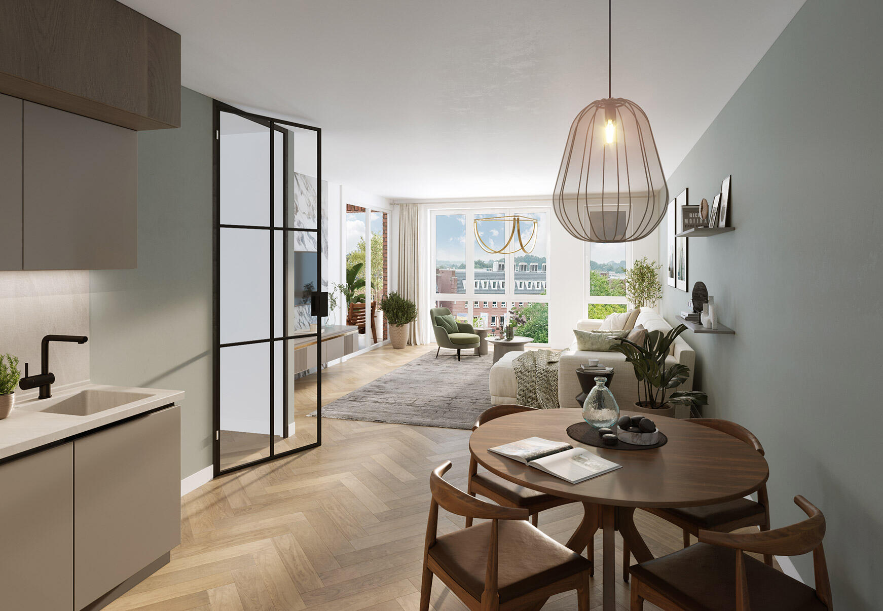 De appartementen grenzen aan een prachtige daktuin die de toekomstige bewoners van veel verschillende soorten groen zal voorzien. Dit heeft ook betrekking op de duurzaamheid van deze projectontwikkeling, want het groene dak neemt regenwater op.