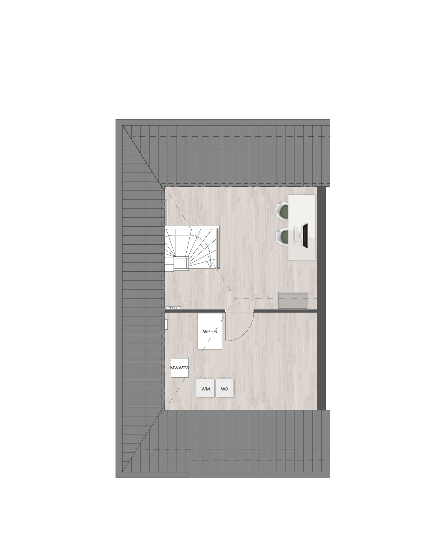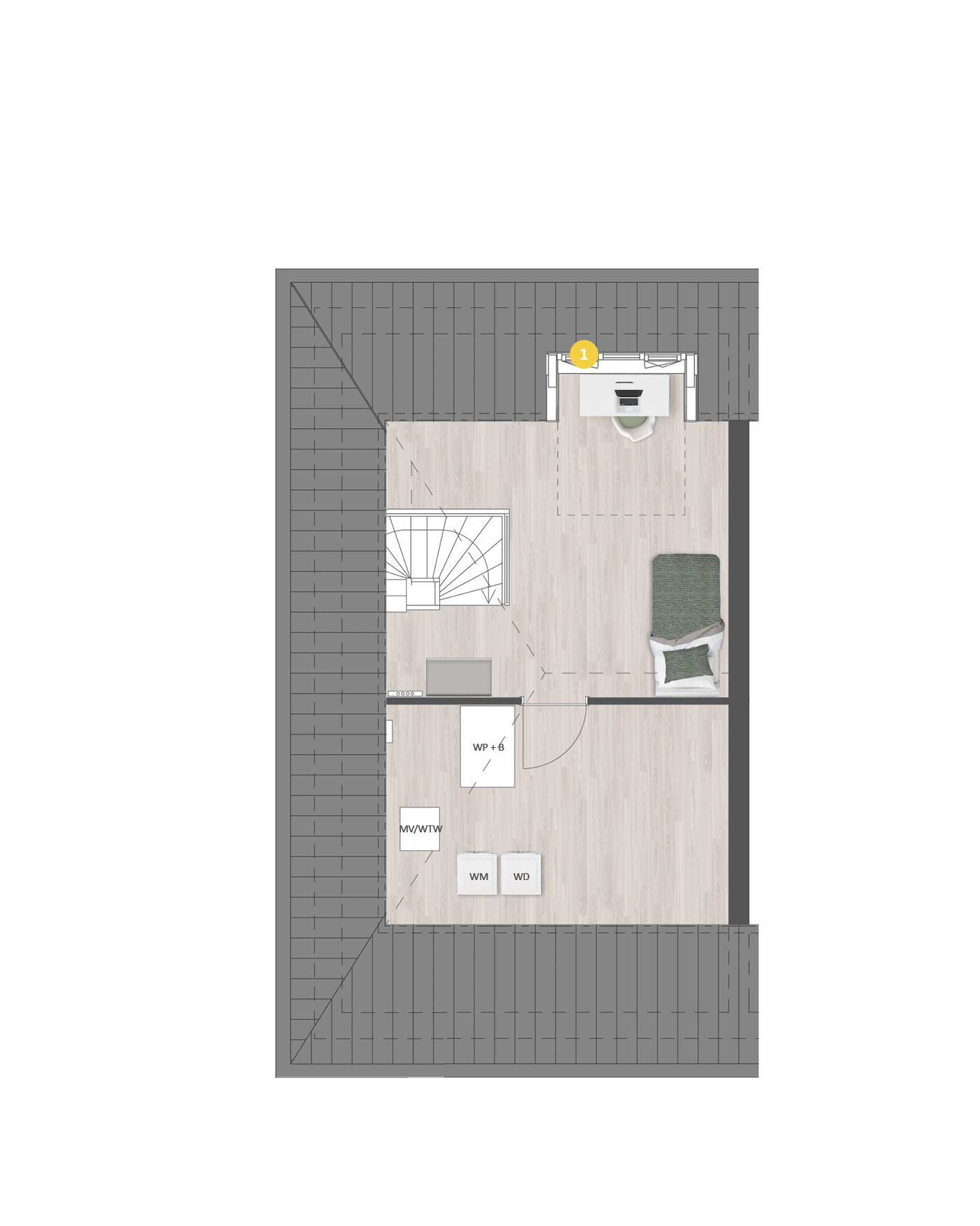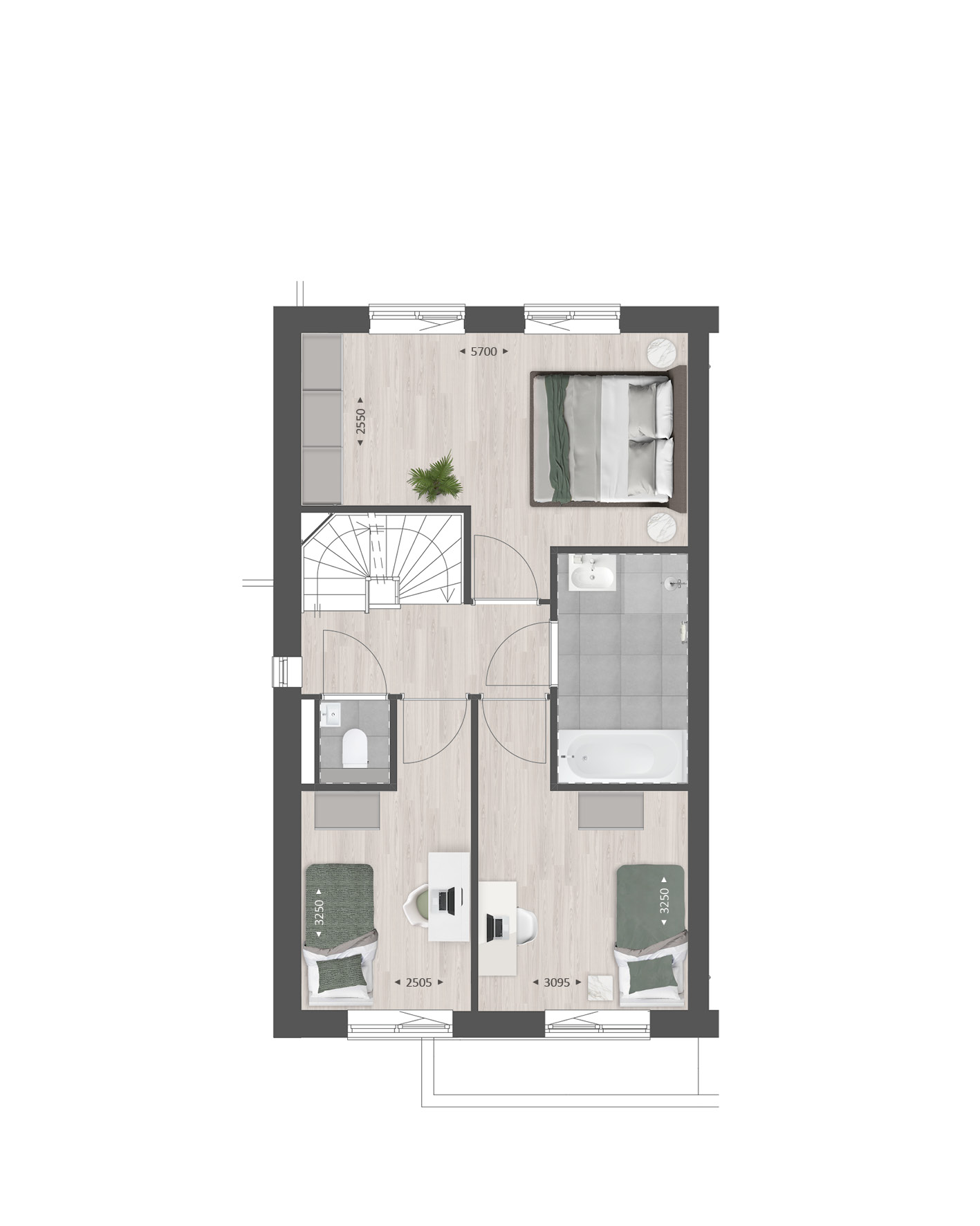 De tweede verdieping is ruim van opzet. Met een combinatie van diverse indelingsopties maak je hier een prachtige woonverdieping met bijvoorbeeld twee slaapkamers, een tweede badkamer en een was-/bergruimte.Ā