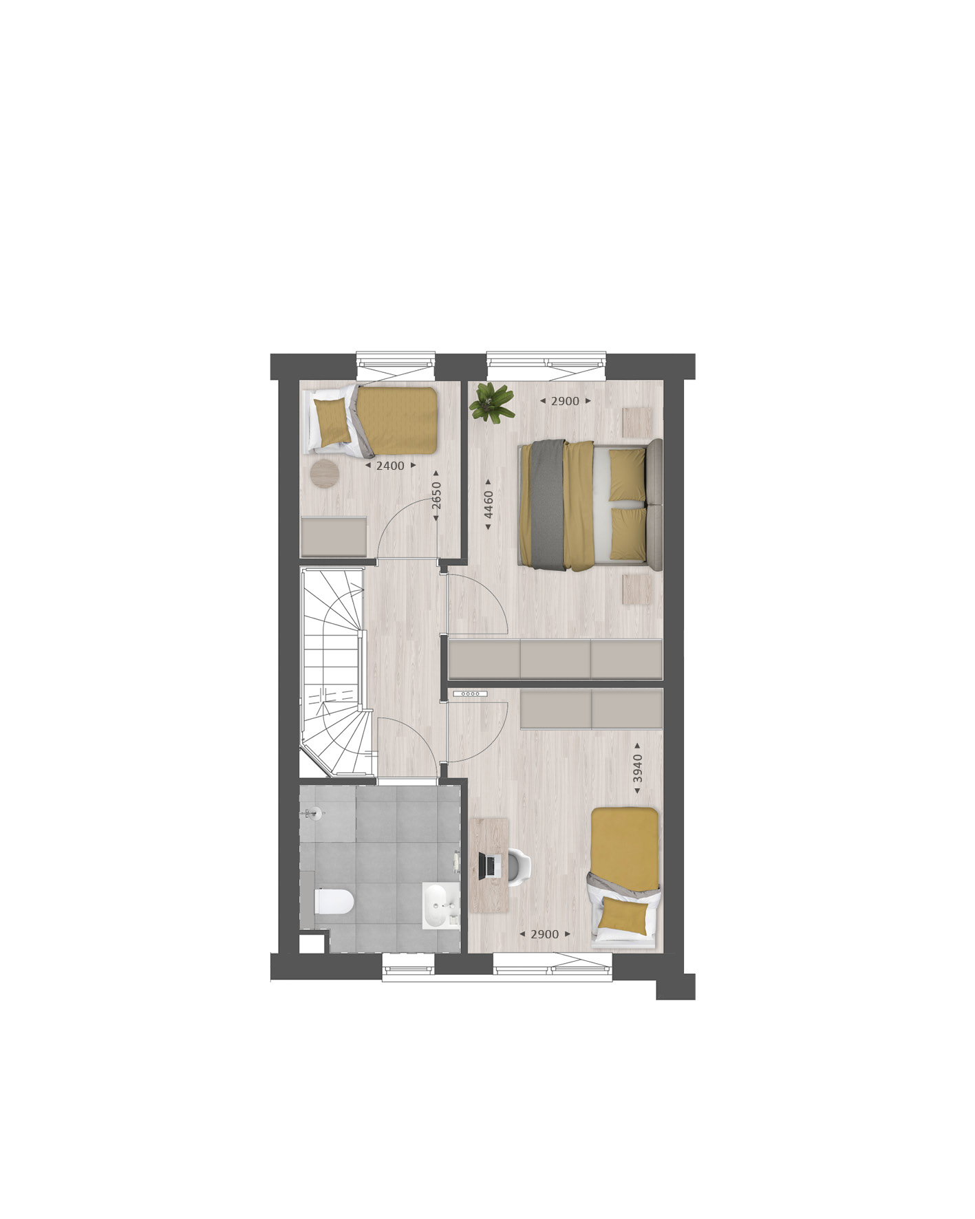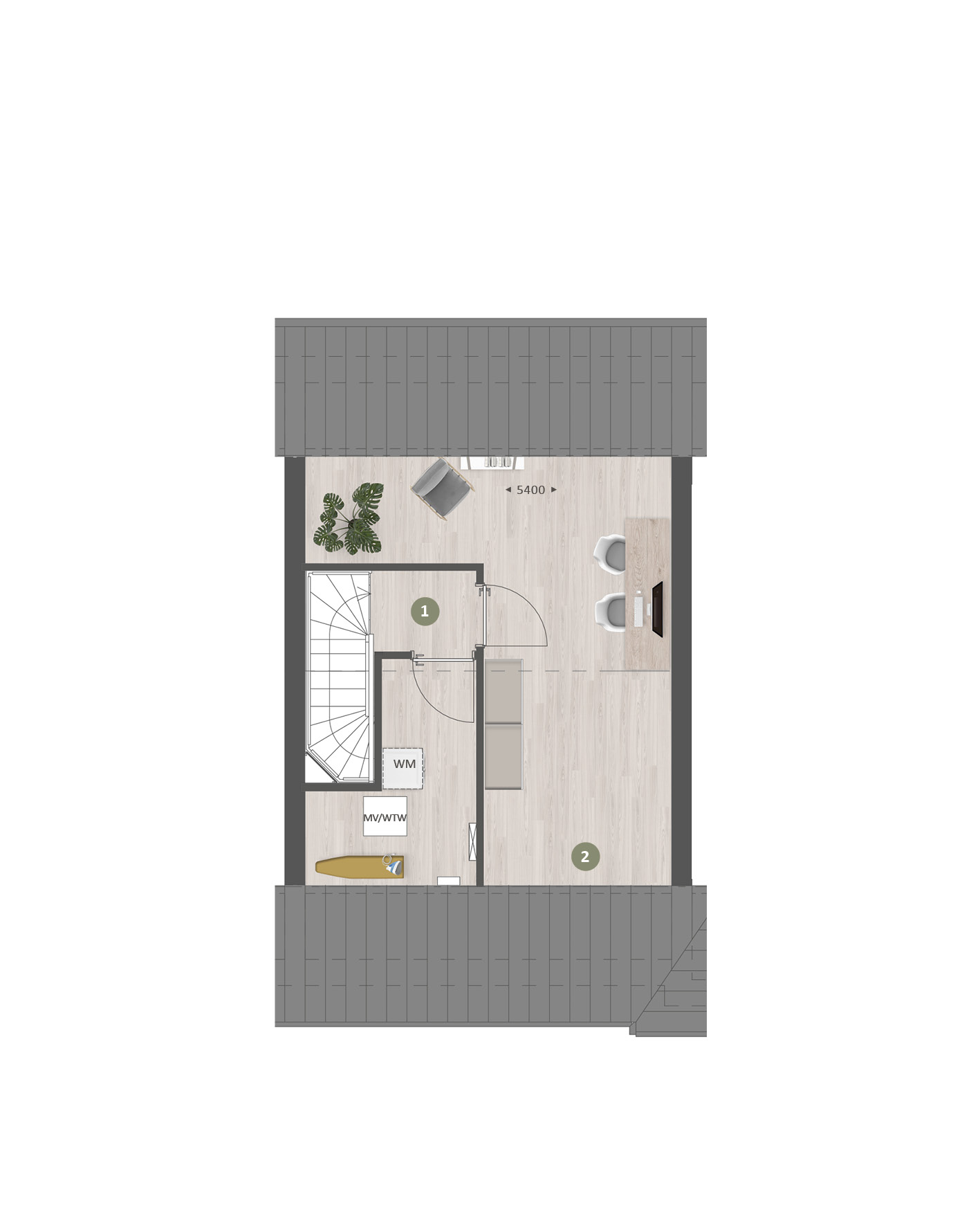 De tweede verdieping biedt je een zee aan ruimte. Hier vind je de aansluitingen voor de wasapparatuur en heb je de mogelijkheid om een aparte wasruimte te maken en een thuiskantoor of extra slaapkamer met dakkapel aan de voor- Ć©n/of achterzijde.Ā Ā