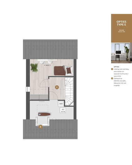 De tweede verdieping biedt je een zee aan ruimte. Hier vind je de aansluitingen voor de wasapparatuur en heb je de mogelijkheid om een aparte wasruimte te maken en een thuiskantoor of extra slaapkamer met dakkapel aan de voor- Ć©n/of achterzijde.Ā Ā