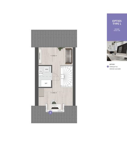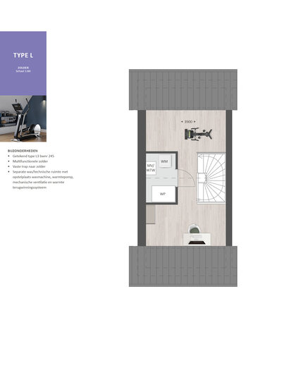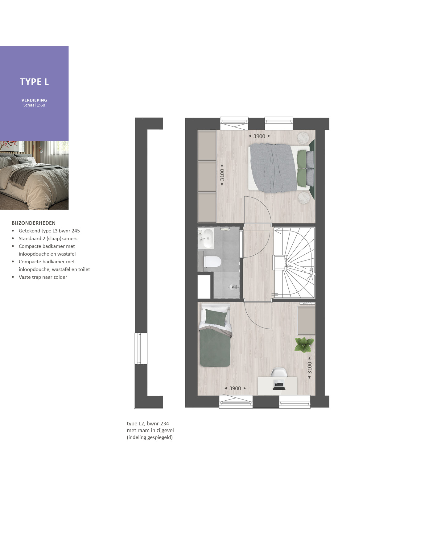 De tweede verdieping is standaard met een vaste trap bereikbaar. Hier is een ruime zolder aanwezig. Met diverse opties kun je hier een volwaardige woonverdieping van maken. Met de keuze van dakkapellen aan de voor- en achterzijde Ʃn de indelingsoptie, creƫer je hier twee kamers Ʃn een wasruimte.