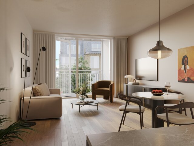 • Woonkamer/keuken met toegang tot een op zuid gelegen balkon/terras.