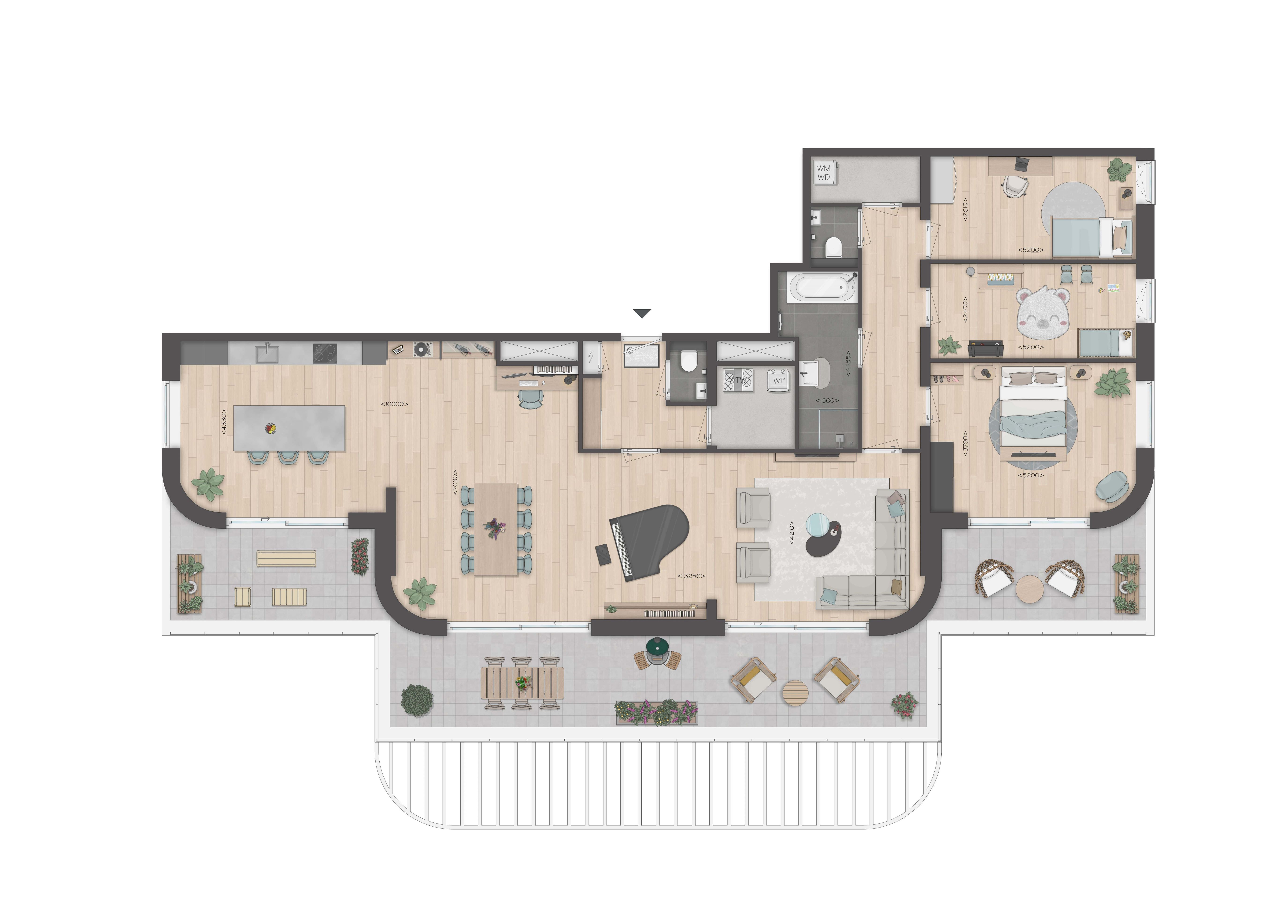 4-kamer penthouse met 3 slaapkamers en 2 parkeerplaatsen in afsluitbare garagebox - type W