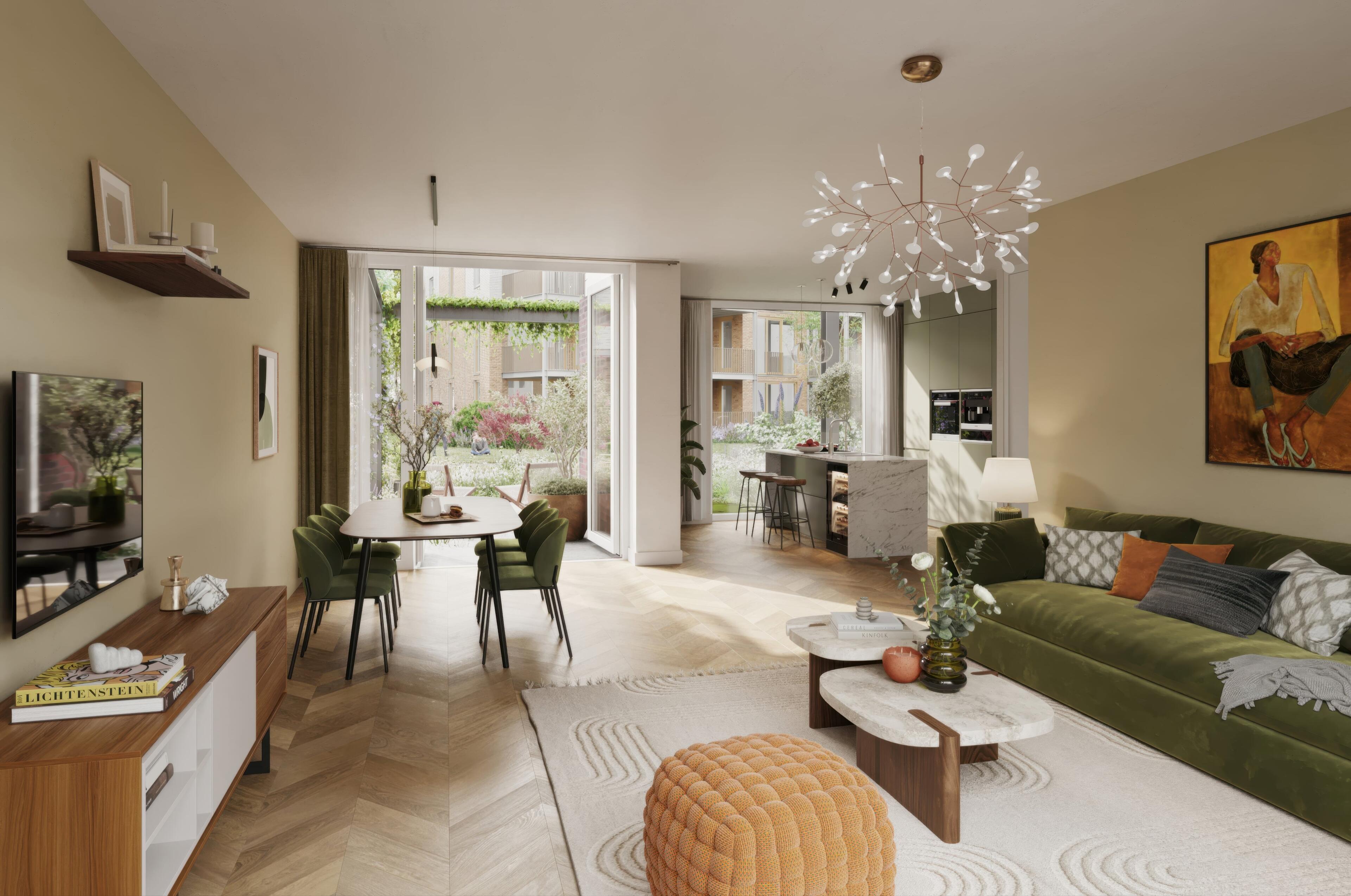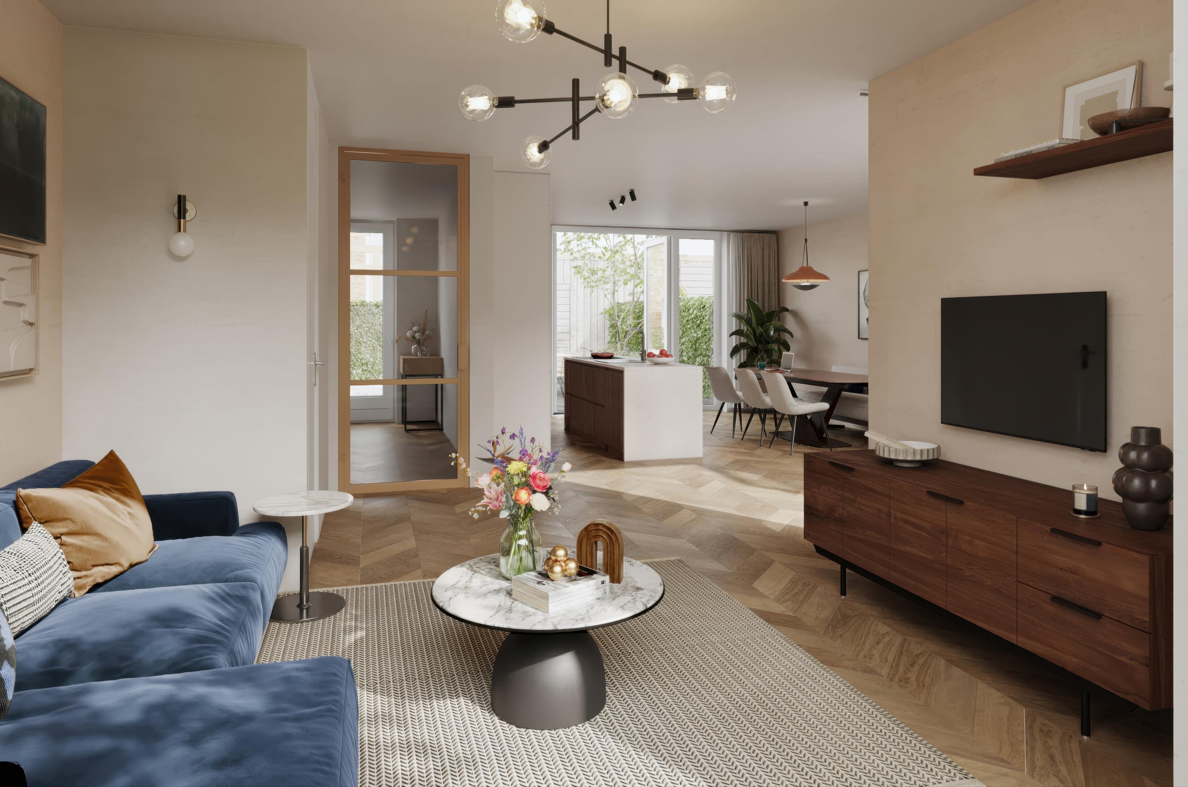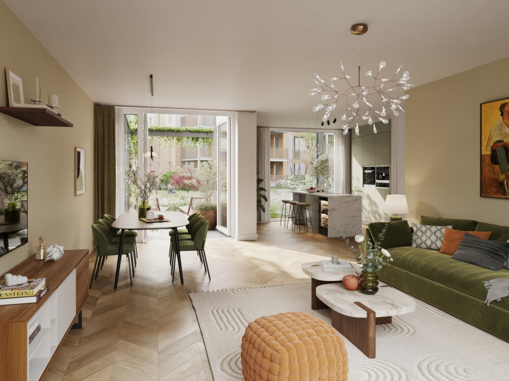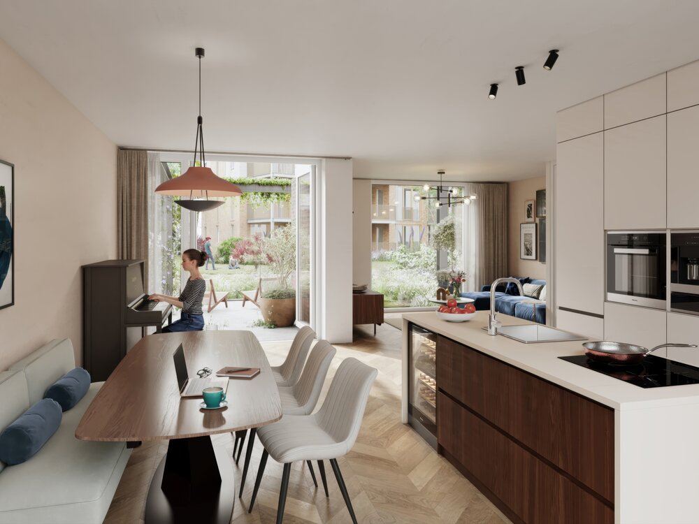 Het parkachtige landschap vormt het hart van de wijk. Slingerende wandelpaden, volwassen groen en open ruimtes creëren een omgeving die uitnodigt tot spelen, ontmoeten en ontspannen. Of je nu geniet van een rustige ochtendwandeling, kinderen ziet opgroeien in een veilige, groene omgeving of simpelweg thuiskomt in een plek die voelt als een natuurlijke verlenging van je leefruimte.