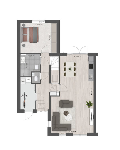 Met de diverse opties die we aanbieden kun je bijvoorbeeld de keuken naar de voorzijde verplaatsen en de woon- en slaapkamer vergroten. Je creëert hiermee veel extra leefruimte op de begane grond.