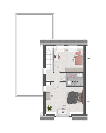 Op de verdieping vind je de overloop, twee slaapkamers en een bergruimte. Met de optie voor een dakkapel aan de voor- en/of achterzijde, creëer je veel extra ruimte en lichtinval in de slaapkamers. In de bergruimte is het mogelijk om een 2e badkamer te maken.