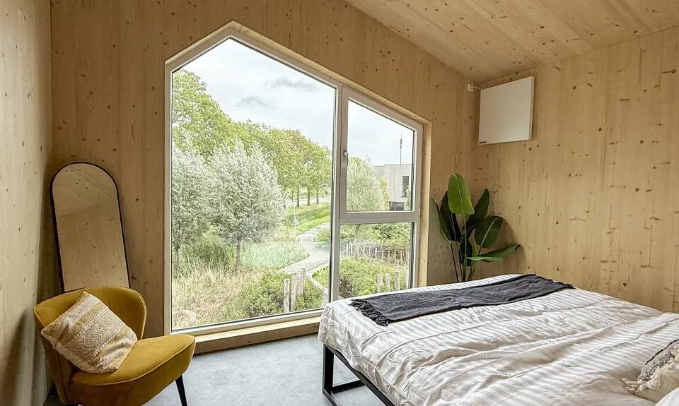 De grote raampartijen zorgen voor veel daglicht en een sterke verbinding met de omgeving: veel zicht naar buiten, veel licht naar binnen. Met ongeveer 63 m² woonoppervlak en een slimme indeling zijn ze ideaal voor kleinere huishoudens.