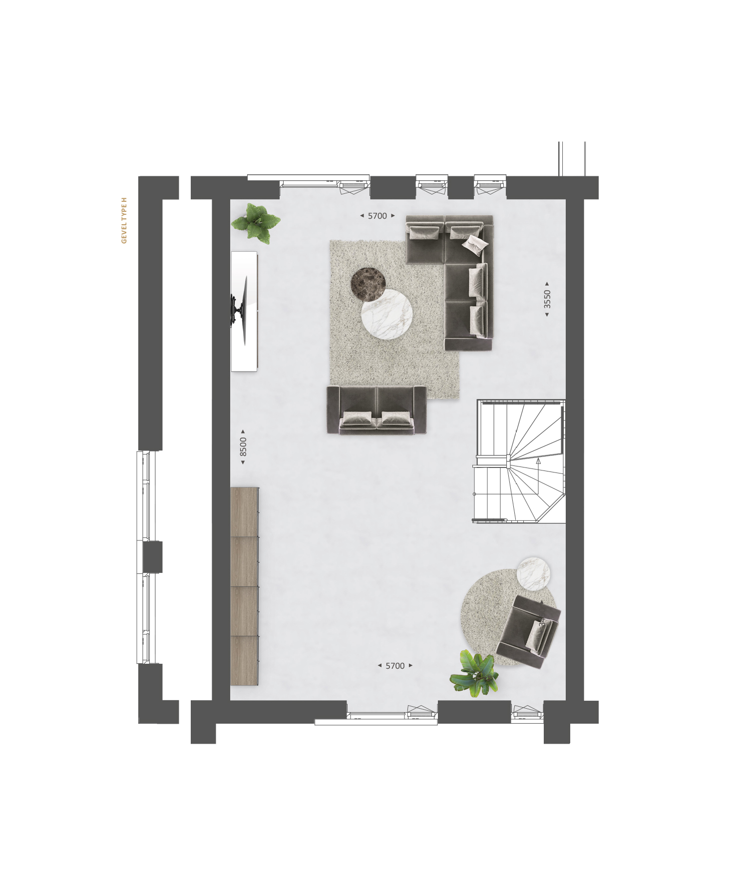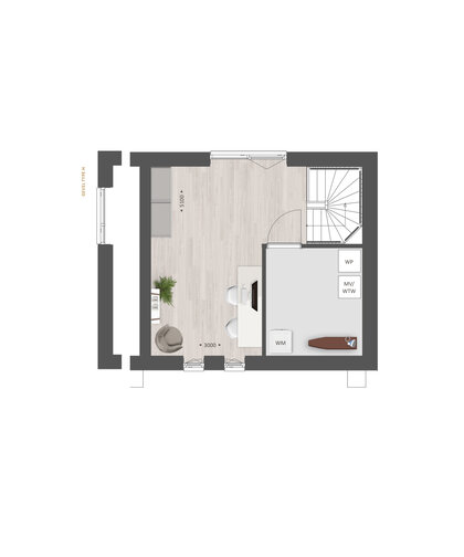 De indeling is bijzonder praktisch met beneden een compacte hal met toilet, een lichte tuingerichte woonkamer en een open keuken met zicht op de straat. TIP: Maak de woonkamer nóg groter met de optie om deze met 1.20m of 2.40m uit te breiden. Of verplaats de keuken naar het midden van de woning of naar de achterzijde om een extra grote leefkeuken te creëren. De optie voor openslaande tuindeuren zorgen voor veel contact met de achtertuin.