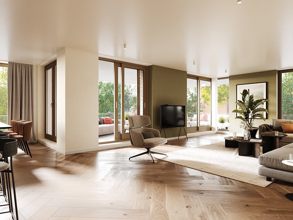 Scrol iets verder naar onderen voor de impressies van de appartementen per verdieping en overige impressies onderaan de website.