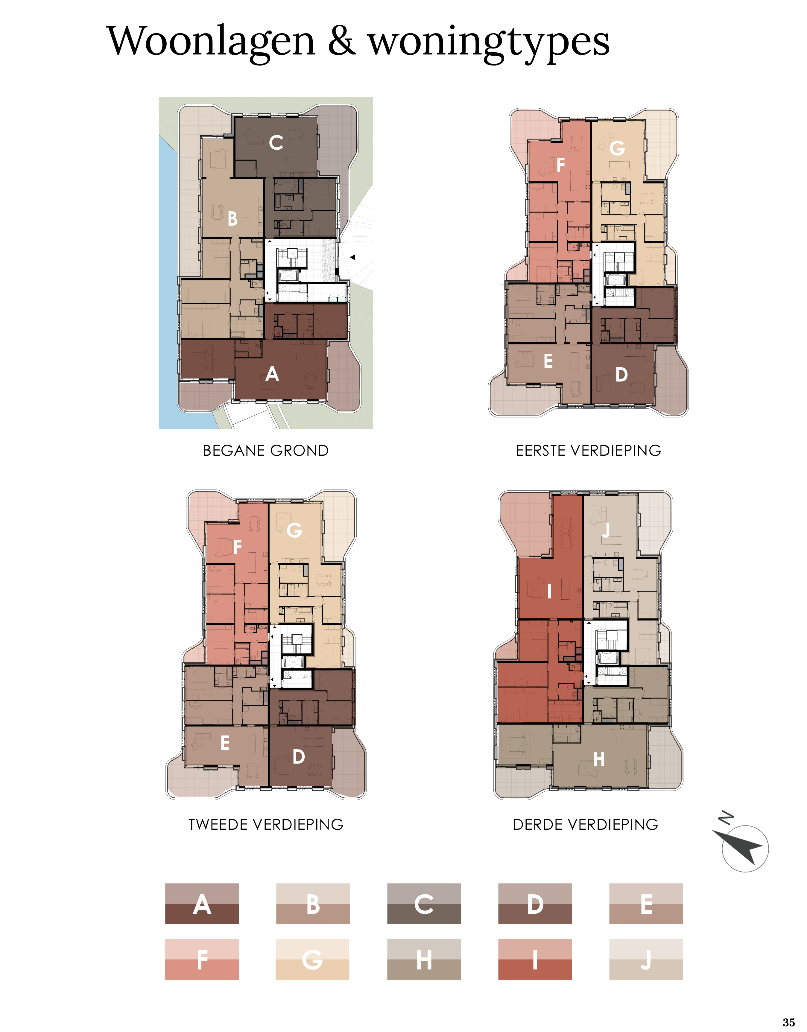 Bekijk op deze plattegrond de verdeling van de verschillende types per verdieping en welke balkonligging ze hebben. Hieronder kun je doorklikken naar een type en een bouwnummer om alle appartementdetails te bekijken.