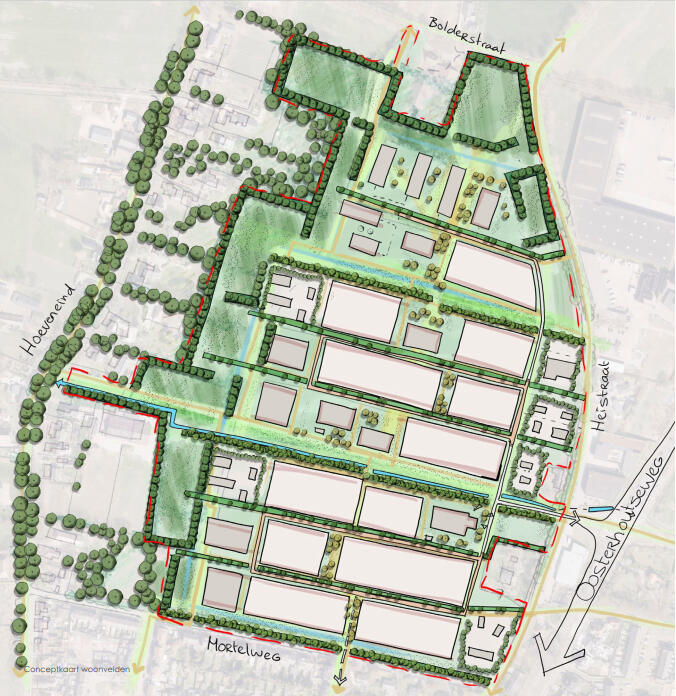 Het stedenbouwkundig plan is doordrenkt van historie en landschap. Oude verkavelingsstructuren, houtwallen en ‘schaapsdriften’ vormen de basis van het ontwerp. De wijk is opgebouwd rond een robuust landschappelijk raamwerk met groenzones, een natuurzone en zichtlijnen die het landschap tot in de woonstraten brengen. Iedereen woont hier letterlijk aan het groen.