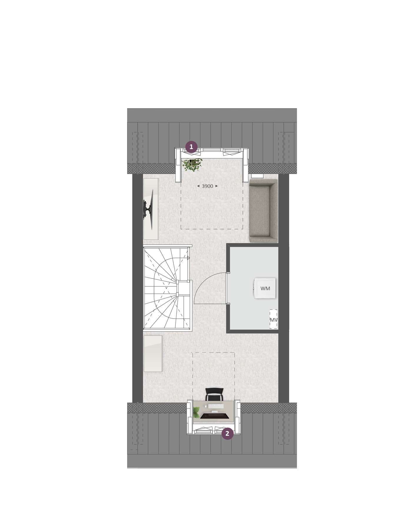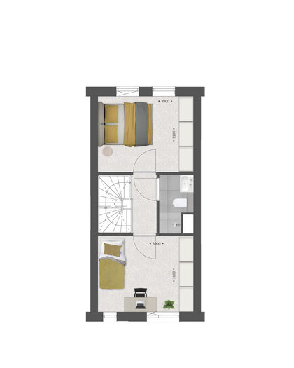 De tweede verdieping is standaard met een vaste trap bereikbaar. Hier is een ruime zolder aanwezig met een techniekruimte en met plek voor de wasmachine en droger. Met diverse opties kun je hier een volwaardige woonverdieping van maken. Met de keuze van dakkapellen aan de voor- en achterzijde Ʃn de indelingsoptie, creƫer je hier twee kamers.