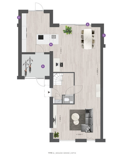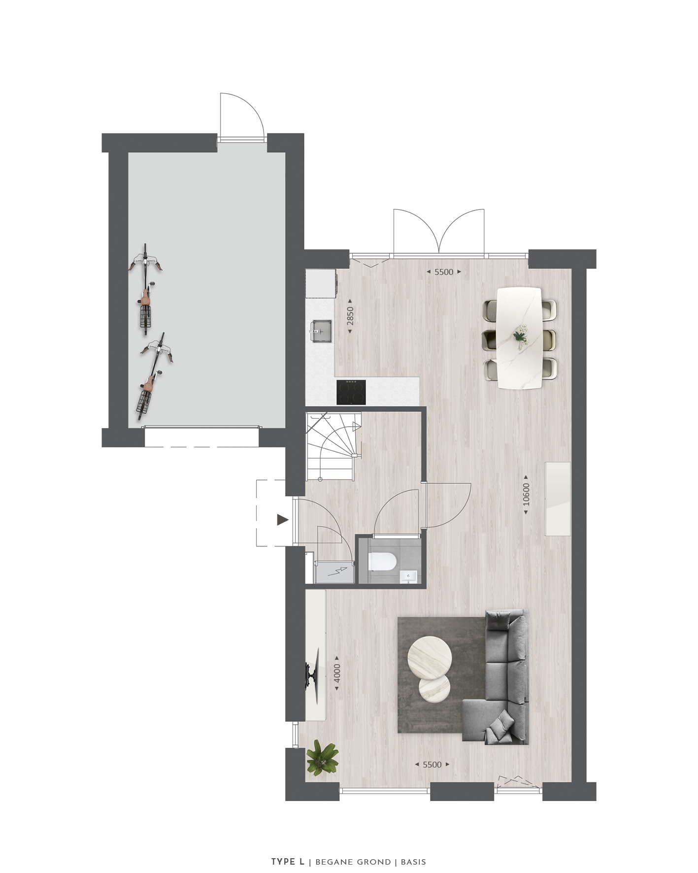 De indeling is bijzonder praktisch met beneden een hal met toilet en garderobe, een lichte L-vormige woonkamer, een open keuken met ruime eethoek. De begane grond kan vergroot worden met een uitbouw van 1.20 of 2.40 meter, waarbij de keuken eventueel naar de voorzijde verplaatst kan worden. Met de optie om de garage te verlengen en/of te splitsen in een berging en een ruimte bij de woning te betrekken, creĆ«er je extra veel leefruimte op de begane grond.Ā