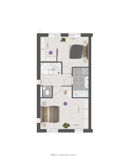 De tweede verdieping is ruim van opzet. Met een combinatie van diverse indelingsopties maak je hier een prachtige woonverdieping met bijvoorbeeld twee slaapkamers, een tweede badkamer en een was-/bergruimte.Ā