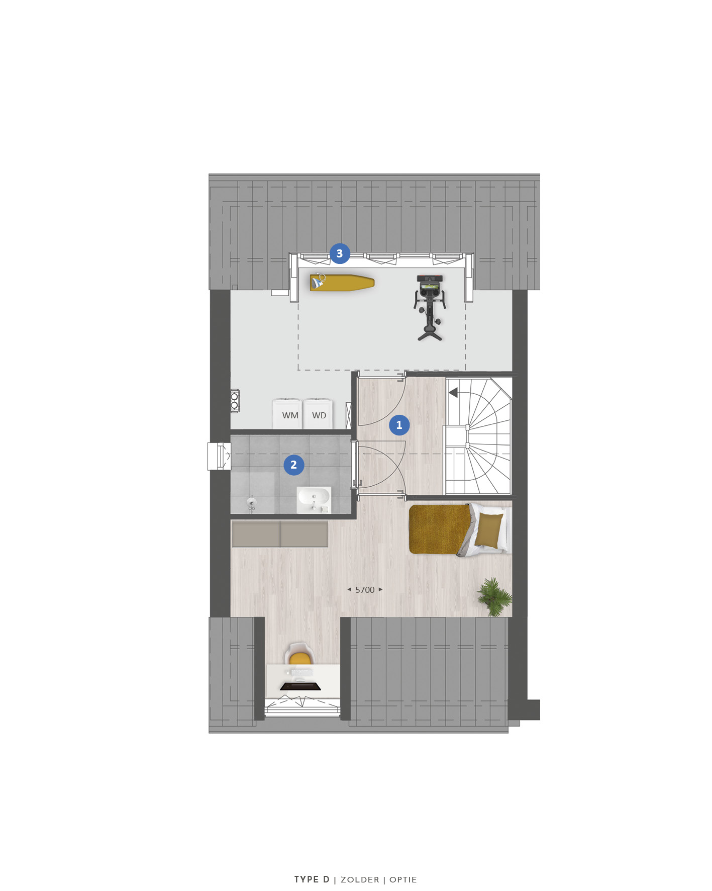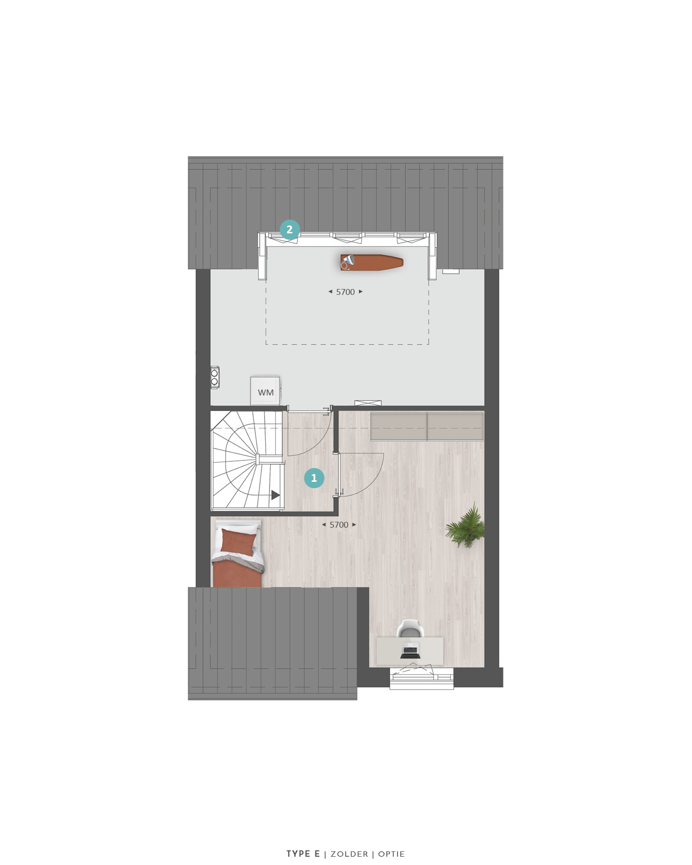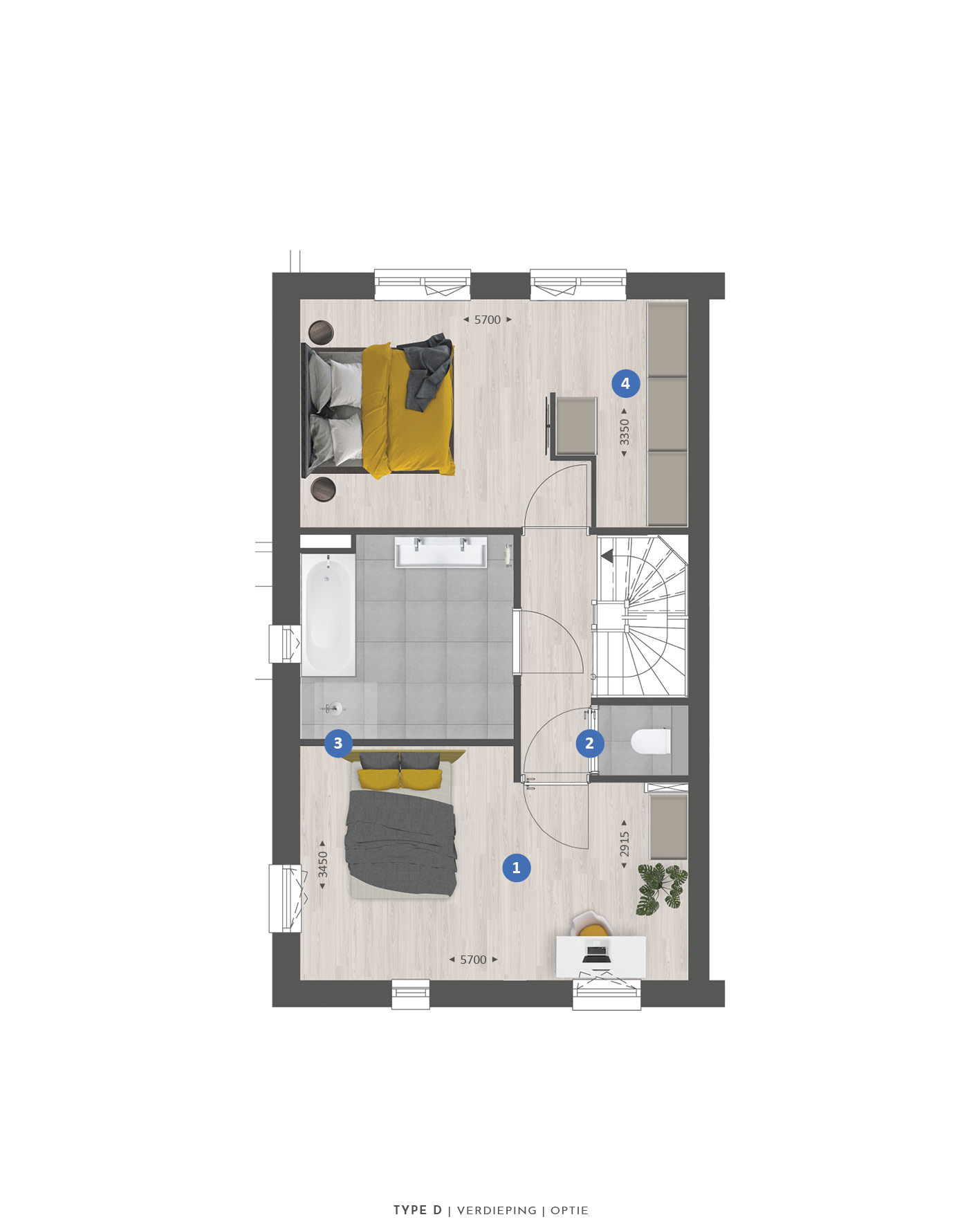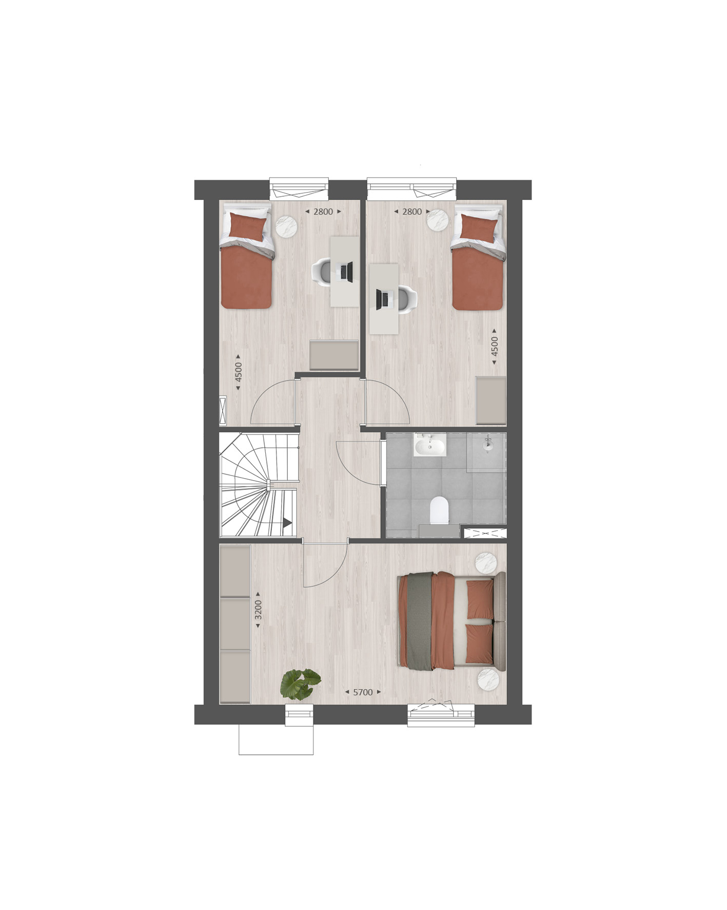 De tweede verdieping is ruim van opzet. Met de combinatie van diverse indelingsopties maak je hier een prachtige woonverdieping met bijvoorbeeld twee ruime kamers met dakkapel aan de voor- en/of achterzijde.Ā