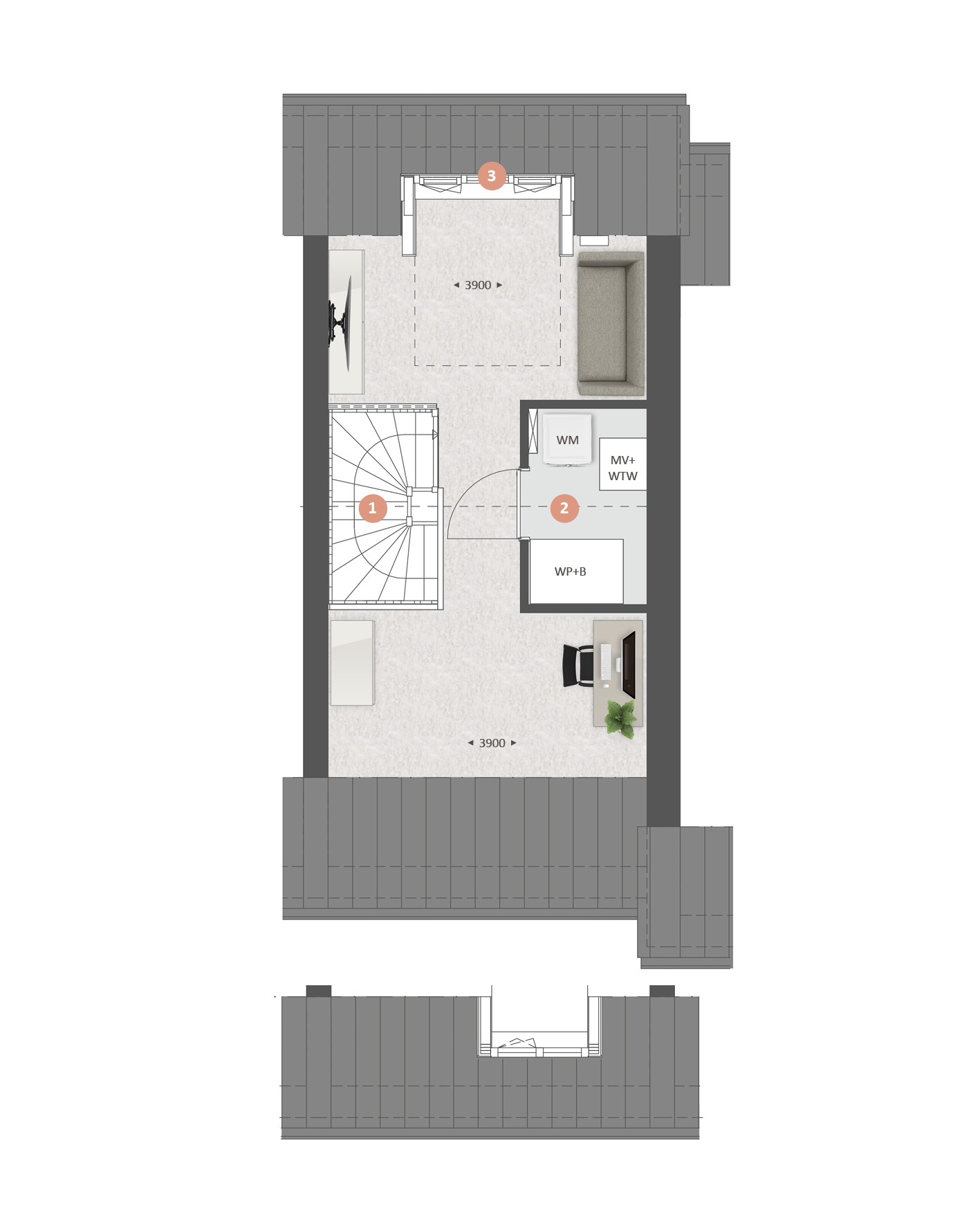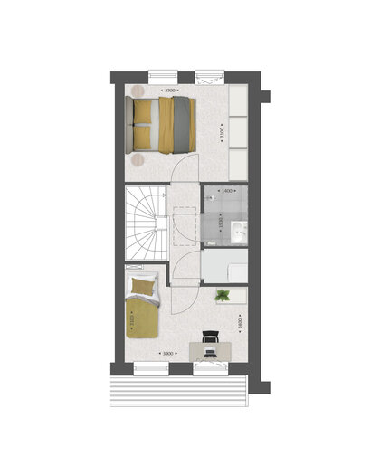 De tweede verdieping is standaard met een vlizotrap bereikbaar. Hier is een ruime zolder aanwezig. Met diverse opties kun je hier een volwaardige woonverdieping van maken. Met de keuze van een vaste trap, eventueel dakkapellen aan de voor- en achterzijde Ʃn de indelingsoptie, creƫer je hier twee kamers Ʃn een wasruimte.