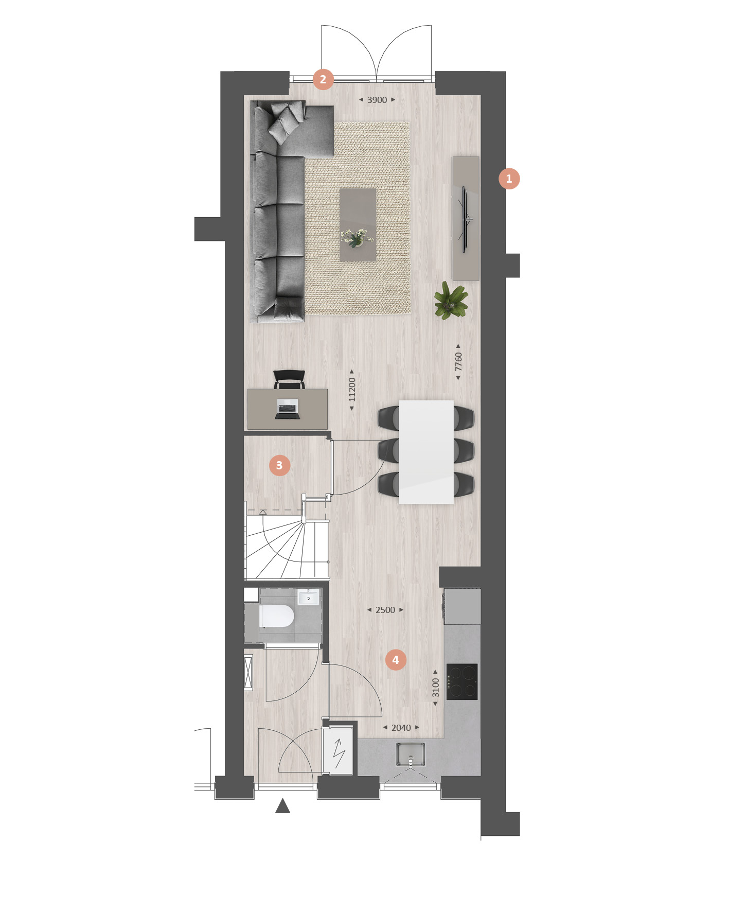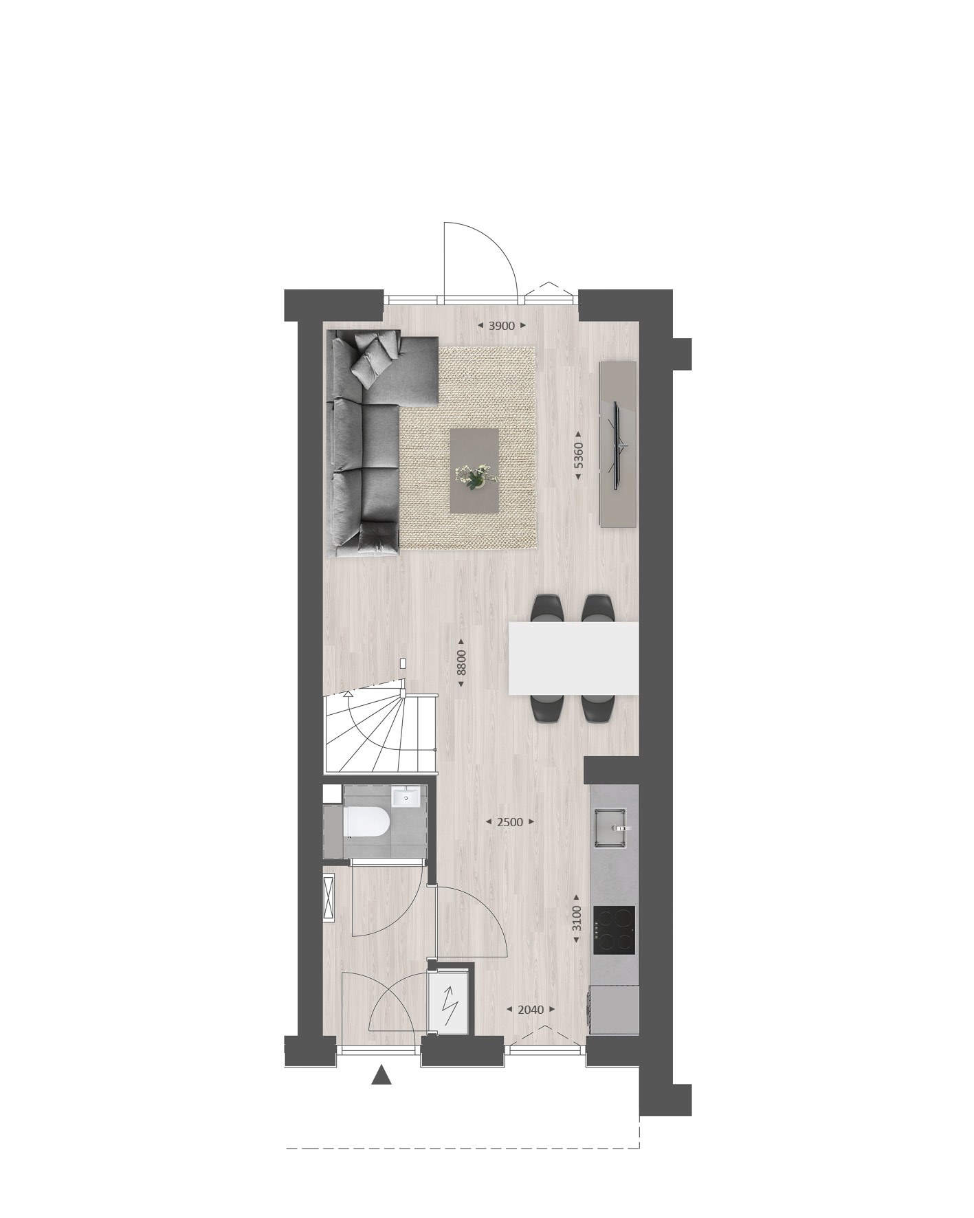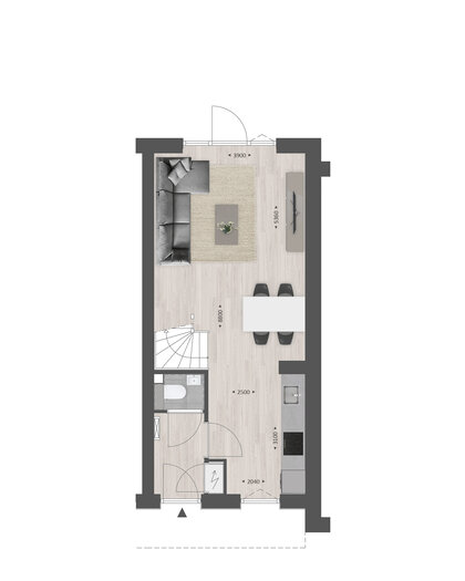 De indeling is bijzonder praktisch met beneden een hal met toilet en meterkast, een open keuken met zicht op de straat en een lichte tuingerichte woonkamer. Met bijv. een aanbouw van 1.20 meter en openslaande tuindeuren maak je de woonkamer nóg groter en lichter.Ā