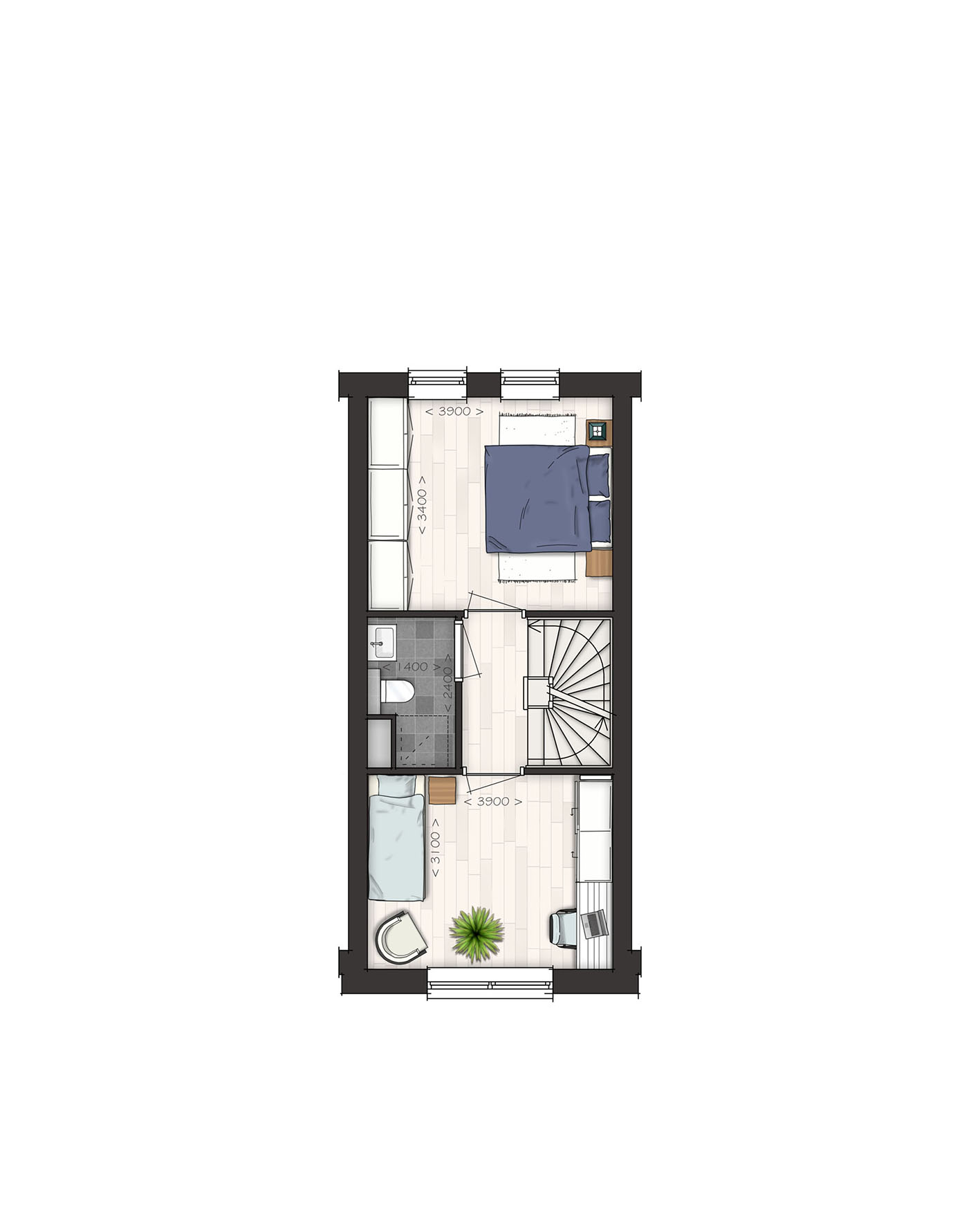 De tweede verdieping is standaard met een vaste trap bereikbaar. Hier is een ruime zolder aanwezig inclusief techniekruimte met plek voor de wasmachine en droger. Met diverse opties kun je hier een volwaardige woonverdieping van maken. Door bijvoorbeeld de keuze voor dakkapellen aan de voor- en achterzijde Ʃn de indelingsoptie, creƫer je hier twee extra kamers. Zie jij jezelf hier al wonen?