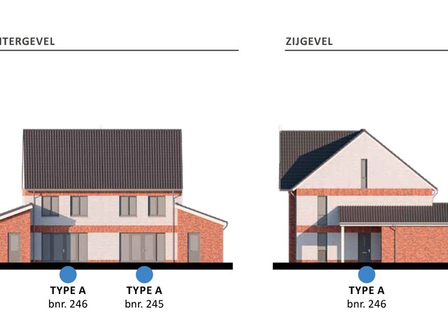 Noot:Ā Dit woningtype is er in meerdere architectuurvarianten. De positie en grootte van de ramen kunnen per architectuurvariant afwijkend zijn. Op deĀ 2D-geveloverzichten per woning(blok) kun je exact zien hoe een bouwnummer eruitziet. Bekijk de beschikbare 3D-woningimpressies van de architectuurvarianten hieronder.