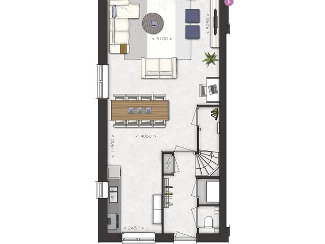 Noot: er is gekozen om dit bouwnummer in basis uit te voeren met een uitbouw van 2.40 meter voor nóg meer leefruimte en een dakraam voor extra lichtinval. De getoonde verkoopprijs is inclusief de kosten van de extra standaard opties.