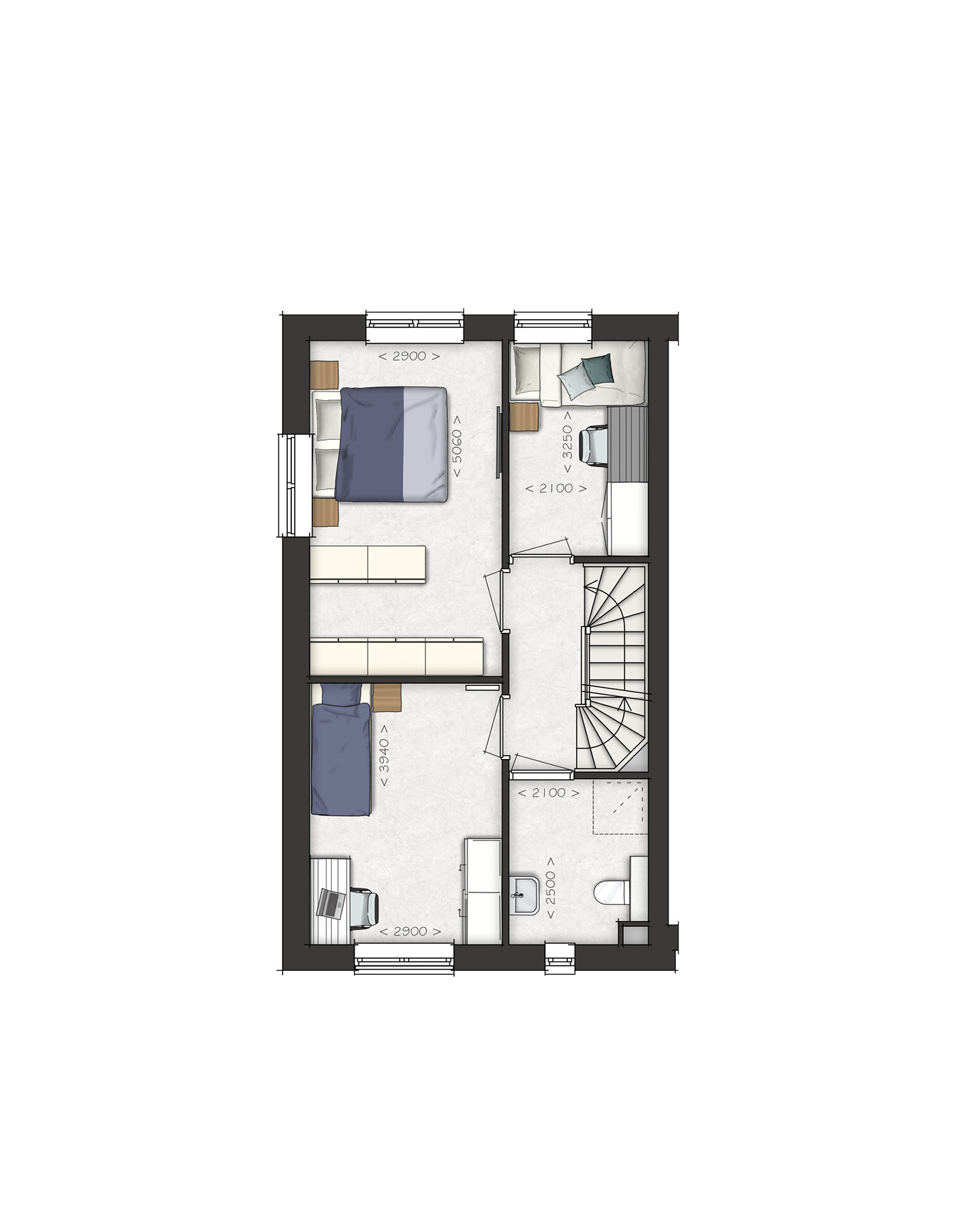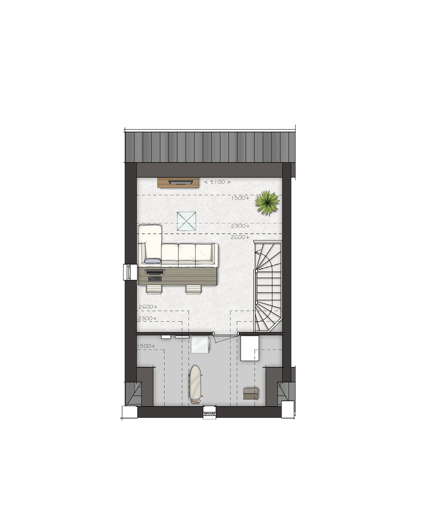 De tweede verdieping biedt je een zee aan ruimte. Hier vind je de aansluitingen voor de wasapparatuur en heb je de mogelijkheid om een aparte wasruimte te maken en een thuiskantoor of extra slaapkamer met dakkapel aan de voor- én/of achterzijde. Zie jij jezelf hier al wonen?