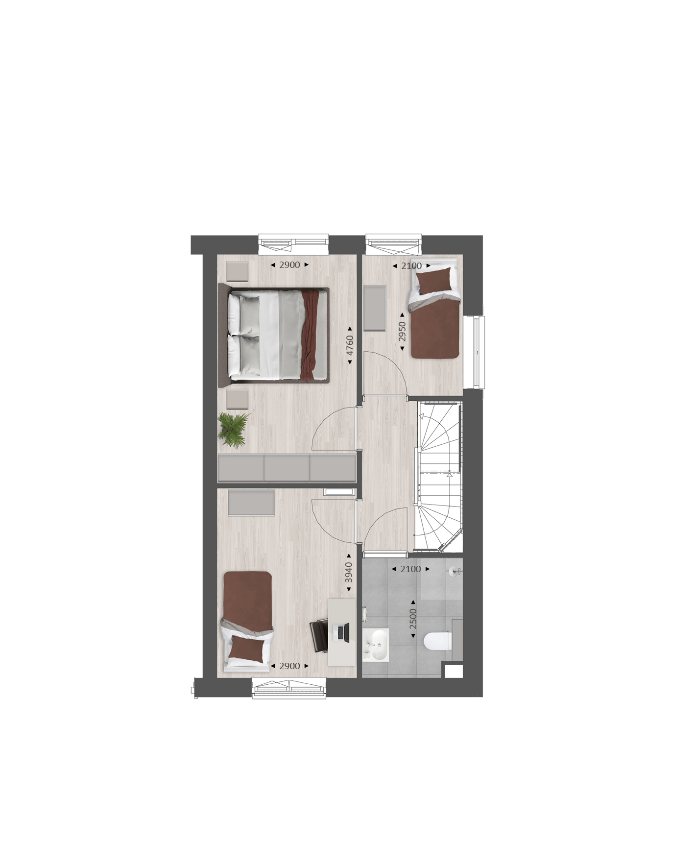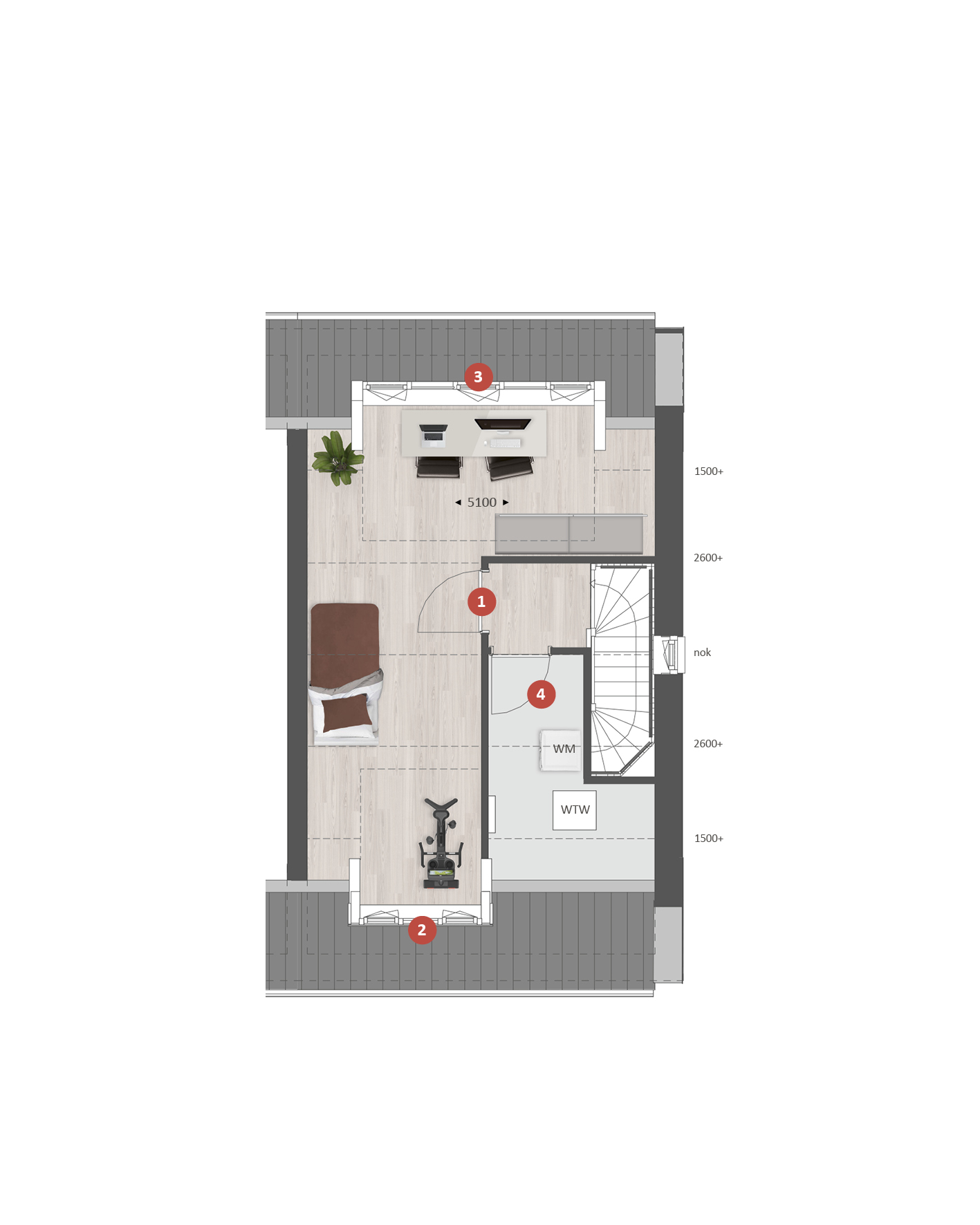 De tweede verdieping biedt je een zee aan ruimte. Hier vind je de aansluitingen voor de wasapparatuur en heb je de mogelijkheid om een aparte wasruimte te maken en een thuiskantoor of extra slaapkamer met dakkapel aan de voor- Ć©n/of achterzijde.Ā Ā