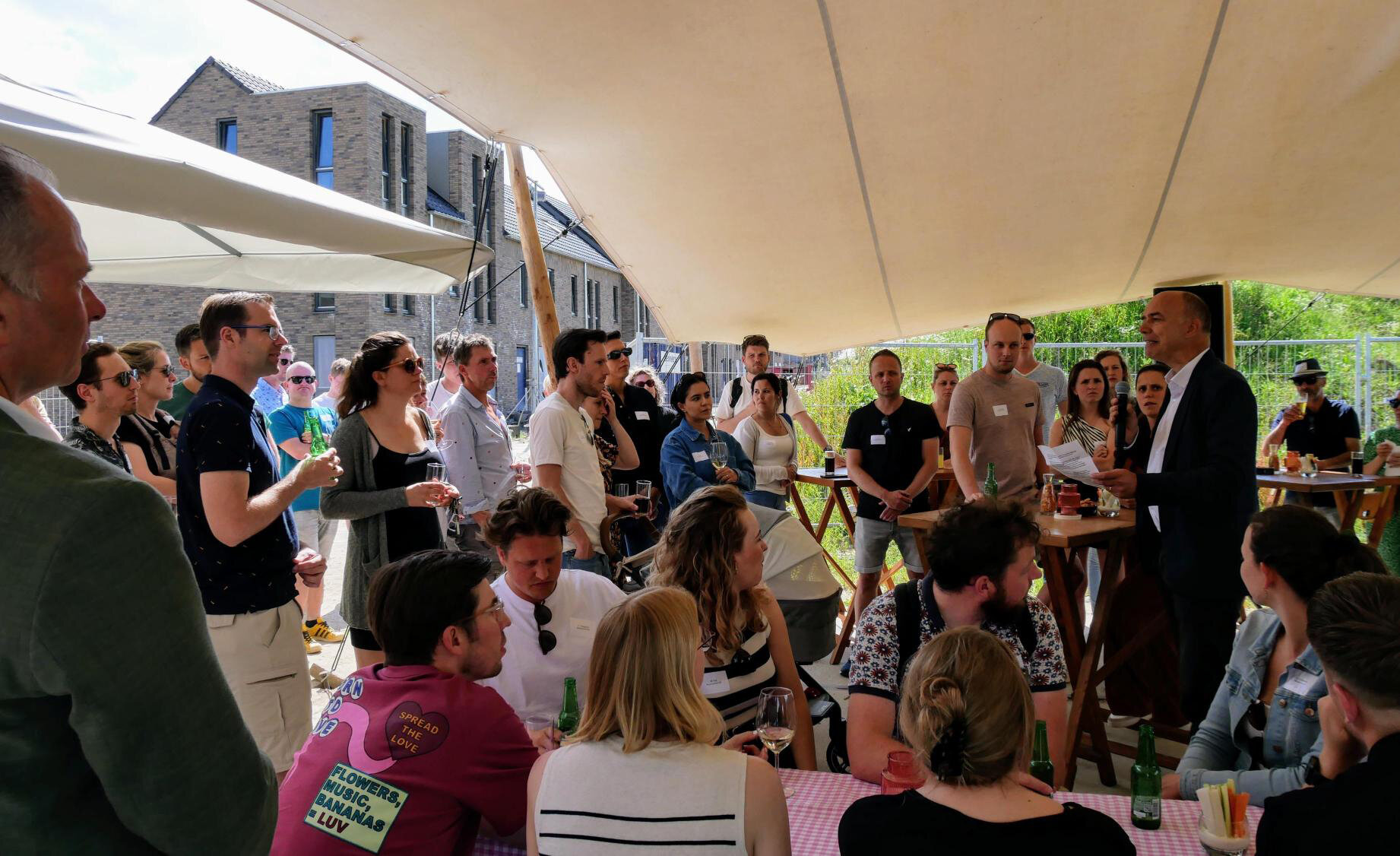 Samen met hun nieuwe buren werd het glas geheven op een mooie toekomst in de wijk. Een bijzonder tintje aan de feestelijke middag: in alle voortuinen stond een whiteboard, waarop de bewoners hun toekomstwens schreven. De polaroids gingen uiteraard mee naar huis.