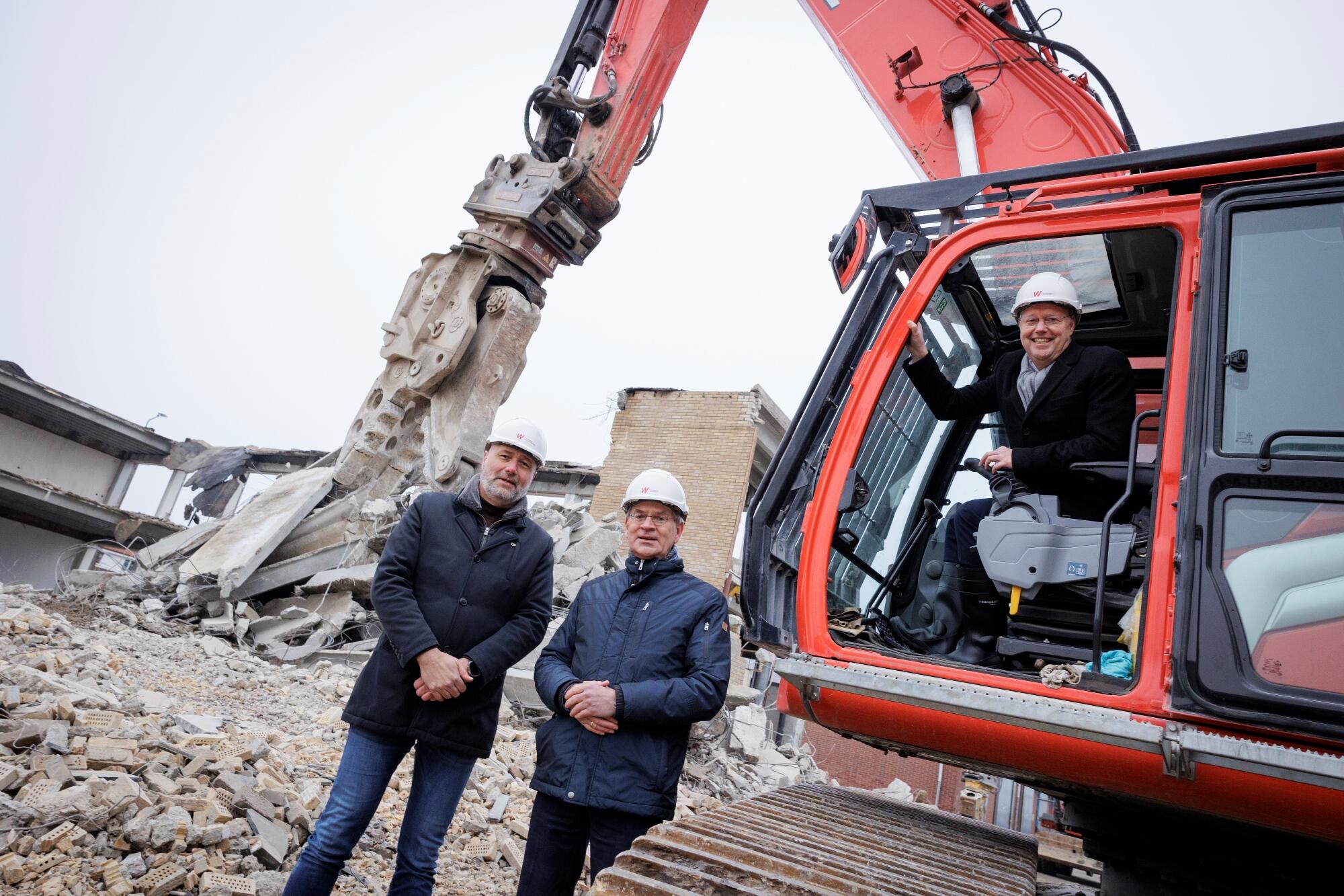 De grootschalige sloop van het voormalig Trivium fabrieksterrein is een belangrijke stap in de ontwikkeling van de nieuwe woonlocatie ‘t Vennehof. Op 13 december gaf wethouder Engbert Stroobosscher officieel het startsein. Onder begeleiding van de firma Roseboom uit Ede, zette hij de eerste hap in het kantoorgebouw waar Trivium jarenlang zijn thuisbasis had.