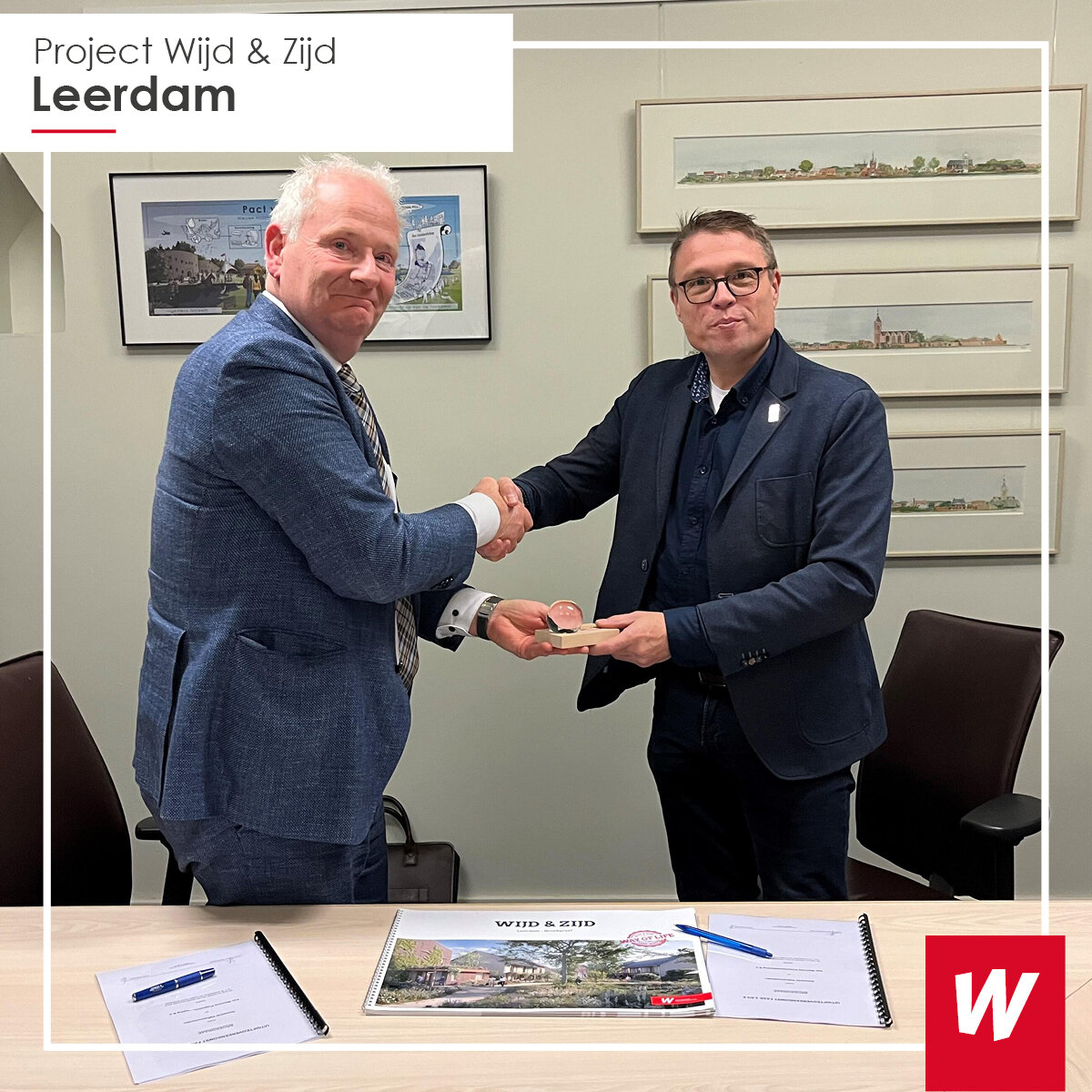 Met het ondertekenen van de uitgifteovereenkomst is op 16 december een belangrijke stap gezet in project Wijd & Zijd in Leerdam. Van Wanrooij Projectontwikkeling zal in nieuwbouwwijk Broekgraaf 60 duurzame, grondgebonden woningen gaan realiseren. De overeenkomst werd getekend door Joop van Montfoort (wethouder gemeente Vijfheerenlanden) en Roland de Waal (algemeen directeur Van Wanrooij Bouw & Ontwikkeling) in het stadhuis te Vianen.