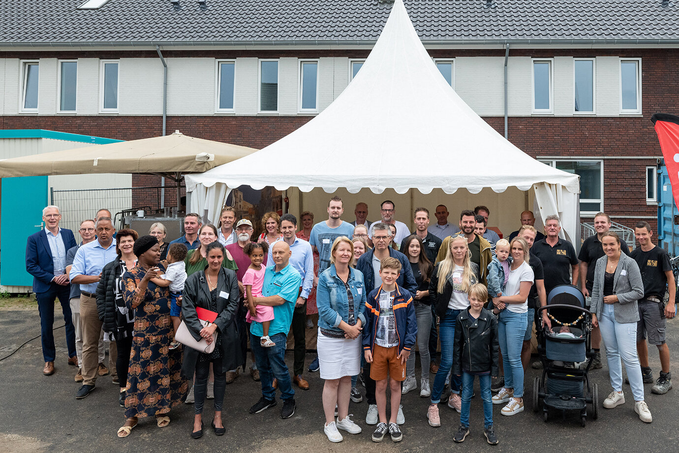 Van Wanrooij schuwt projecten in kleine dorpen niet. Dat bewijzen we onder meer op de Weebosch in Gemeente Bergeijk. Het project ‘Kapelledries’ zorgt voor een waardevolle impuls aan dit fraaie kerkdorp. Het project bestaat uit 6 huurwoningen, 5 koopwoningen en 3 zelfbouw-kavels. Op dinsdag 26 juli werden de woningen feestelijk opgeleverd. Een huurder en koper kregen symbolisch een sleutel overhandigd door wethouder Mathijs Kuijken. Na dit feestelijke moment was er een gezellige borrel voor de kersverse bewoners van het nieuwbouwproject. Een mooie gelegenheid om alvast kennis te maken met de nieuwe buren.