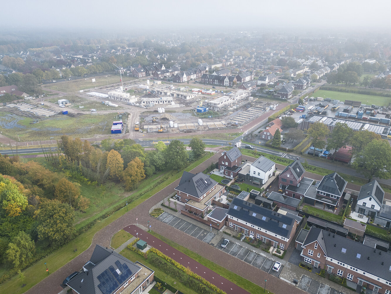 De vogeltjes fluiten en de mist trekt op uit de weilanden langs De Erven in Heesch. Een typische herfstgeur hangt in de lucht. Of de samenwerking met woningcorporatie BrabantWonen ook in herfstsferen verkeerd, is allerminst het geval. Het bloeit eerder in Heesch, waar de laatste fase van de nieuwbouw is aangebroken. “De dorpse opzet van het eerste deel van de wijk is ruim en groen”, laat Henk van BrabantWonen zien. “De gescheiden rijbanen met groene stroken geven het straatbeeld een mooi aanzicht. Aan de woningen rond de centraal gelegen speeltuin zie je nauwelijks het verschil tussen een koop- of huurwoning. Ja, je ziet het wellicht aan de voortuintjes. Niet iedereen heeft de financiële mogelijkheden om dat mooi in te richten. Wat helpt zijn de groene erfafscheidingen in de vorm van hagen. Die moeten bewoners in stand houden. Dat maakt het een nette wijk.”